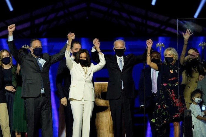 El demócrata Joe Biden, virtual presidente electo de Estados Unidos, invitó este sábado a los estadounidenses a dejar atrás la división que ha imperado durante el Gobierno de Donald Trump e instó a que todos se den "una oportunidad"."Tenemos la oportunidad de vencer la desesperanza y construir una nación de prosperidad y con propósito", dijo Biden durante su discurso de victoria desde Wilmington (Delaware), acompañado de la vicepresidenta electa, Kamala Harris.El veterano líder demócrata prometió que buscará ser un mandatario que "una" al país, en vez de "dividirlo" y por ello se dirigió a los votantes de Trump, que ha recibido el apoyo de más de 70 millones de estadounidenses en estas elecciones."A quienes votaron por el presidente Trump, entiendo su decepción esta noche. Yo mismo he perdido un par de elecciones. Pero ahora, démonos una oportunidad. Es hora de dejar de lado la dura retórica. Bajar la temperatura. Para volver a vernos. Escucharnos de nuevo", dijo Biden.Para ello, el que fuera vicepresidente de Barack Obama entre 2009 y 2017 pidió a los estadounidenses que no sólo tengan fe en el país, sino que también la propaguen, al acordarse de los consejos que le daban sus difuntos abuelos."Me acuerdo cuando era un niño cómo mi abuelo me decía al salir de nuestra casa en Scranton 'Joey, mantén la fe', y nuestra abuela cuando todavía vivía me decía 'no Joey, propágala'. ¡Propaga la fe!", afirmó.Biden aprovechó su discurso, que duró unos quince minutos, para agradecer especialmente a la comunidad afroamericana que votó en masa por él durante las primarias demócratas y también ahora en los comicios a la Casa Blanca."En esos momentos en los que esta campaña estaba en su punto más bajo, la comunidad afroamericana salió a defenderme. ¡Siempre me han apoyado y yo también lo haré!", dijo el presidente electo.Además, Biden se puso como primer objetivo de su futuro Gobierno controlar el enorme brote de coronavirus que sufre Estados Unidos, donde ya ha habido 9.8 millones de contagios y 237 mil muertes."Nuestro trabajo comienza poniendo el coronavirus bajo control", afirmó Biden, al anunciar que este mismo lunes formará un grupo de trabajo contra la pandemia con expertos y científicos dentro de su equipo de transición que elaborarán la estrategia que pondrá en marcha a partir del 20 de enero, el mismo día de su toma de posesión."No escatimaré esfuerzos, ni compromisos, en revertir esta pandemia", prometió Biden.La vicepresidenta electa de EU, Kamala Harris, celebró este sábado su elección como primera mujer que llega a la Casa Blanca en la historia del país y prometió romper barreras para que otras mujeres puedan llegar a ese cargo.En un emotivo discurso de victoria en Wilmington (Delaware), Harris agradeció a los estadounidenses haber votado por "la esperanza, la unidad, la decencia, la ciencia y la verdad", para dar pie a "un nuevo día" en el país."Aunque puede que yo vaya a ser la primera mujer en este cargo, no seré la última. Porque cada niña pequeña que nos está viendo esta noche ve que este es un país de posibilidades", afirmó Harris.Vestida de blanco, como las sufragistas, el mismo año en el que se cumplió el centenario del derecho de las mujeres a votar en Estados Unidos, Harris aseguró que no habría llegado a donde está si no fuera por esas activistas, y por las millones de estadounidenses que participaron en las elecciones este año.También homenajeó a las "generaciones de mujeres, mujeres negras, asiáticas, blancas, latinas y nativas estadounidenses de toda la historia, que han abierto el camino para el momento de esta noche"."Mujeres que lucharon y sacrificaron tanto por la igualdad, la libertad y la justicia para todos, incluidas las mujeres negras, a las que a menudo no se tiene en cuenta, pero que a menudo demuestran que son la columna vertebral de nuestra democracia", agregó.Además, Harris tuvo un mensaje para todos los niños del país, independientemente de su género: "Sueñen con ambición, lideren con convicción, y atrévanse a mirarse a sí mismos de una forma en la que otros no les han visto, simplemente porque nunca lo han visto antes".La aún senadora demócrata por California dio su discurso justo antes de la intervención del presidente electo de EU, Joe Biden, y le agradeció el haber "tenido la audacia" de "elegir a una mujer como su vicepresidenta"."Intentaré ser la vicepresidenta que Joe Biden fue para el presidente (Barack) Obama: leal, honesta y preparada, despertándome cada día pensando en ustedes y sus familias", garantizó.JM