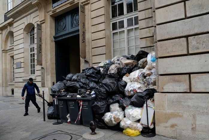 Desde la mayor incineradora de residuos de Francia, el sindicalista Ali Chaligui advirtió este martes que los paros de los basureros en París, iniciados hace más de dos semanas, se endurecerán si el Gobierno no retira su reforma de las pensiones."Lo haremos mediante el principio de la huelga, que es una acción colectiva, discutida y dentro de un marco legal. Eso será suficiente para detener la reforma", afirmó Chaligui, desmarcándose de las acciones violentas que sí se han reproducido en algunas manifestaciones espontáneas antigubernamentales las últimas noches.La huelga de la recogida de desechos en París está siendo uno de los símbolos de la profunda insatisfacción social por el proyectado retraso de la edad mínima de jubilación de los 62 a los 64 años en Francia.La capital de la moda, del glamour, de los museos y de la alta cocina, se ha encontrado en el espacio de unos días repleta de basuras esparcidas en las calles.Una situación que el Ejecutivo francés ha intentado remediar decretando la vuelta al trabajo obligatoria de decenas de profesionales de la limpieza. Sin embargo, para Chaligui, representante de la Confederación General del Trabajo (CGT), "hay mucho cuento mediático" sobre ese tema."El movimiento de huelga continúa y se amplifica, con o sin imposición gubernamental", aseguró.Sin ofrecer cifras de las toneladas aún por recoger -el Ayuntamiento ha calculado que son 10 mil-, el prefecto de Policía de París, Laurent Núñez, declaró a BFMTV que continuarán imponiendo a ciertos trabajadores la recogida de la basura, así como los desalojos de piquetes en los depósitos de camiones y en los centros de tratamientos de residuos.A pesar de esos avisos, los huelguistas de Ivry replicaron que no se echan para atrás y que pondrán toda la carne en el asador para impedir una reforma que entrará en vigor en breve, una vez que el Gobierno de Emmanuel Macron superase el lunes dos mociones de censura, una de ellas por sólo nueve votos."Es una reforma injusta, porque nosotros tenemos esperanza en una vida mejor, no llegamos con salud hasta el final de nuestras carreras", se indignó Chaligui.Con la entrada en vigor de la reforma, los trabajadores de limpia, dependiendo de si son del sector público o privado, verán retrasada su edad mínima de jubilación de 57 a 59 años, por debajo de la norma general porque se considera un oficio particularmente penoso.¿Cuáles serán las nuevas medidas para endurecer la protesta? Según varios sindicalistas del sector, atraer a más empleados a la huelga. En París hay un total de 10 mil profesionales, incluyendo los implicados en todos los procesos.JM