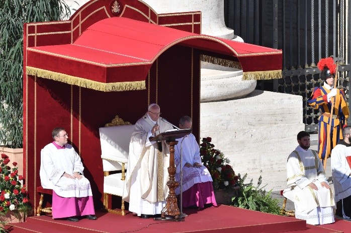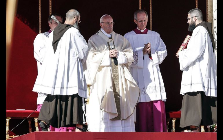 El Papa Francisco proclamó hoy a 35 nuevos santos, entre ellos tres niños indígenas, llamados los "Mártires de Tlaxcala (México)", asesinados entre 1527 y 1529 y un grupo de 30 brasileños, asesinados en 1645 y considerados los primeros mártires del país, en una ceremonia en la Plaza de San Pedro del Vaticano.En su homilía, Francisco explicó que "los santos hoy canonizados, y sobre todo los mártires, nos señalan este camino. Ellos no han dicho 'sí' al amor con palabras y por un poco de tiempo, sino con la vida y hasta el final"."Su vestido cotidiano ha sido el amor de Jesús, ese amor de locura con que nos ha amado hasta el extremo, que ha dado su perdón y sus vestiduras a quien lo estaba crucificando", agregó Francisco, quien pidió que estos santos concedan a los fieles "la gracia de elegir y llevar cada día este vestido, y de mantenerlo limpio".Durante la ceremonia de hoy también se celebraron las canonizaciones del sacerdote español Faustino Míguez (1831-1925), fundador del Instituto Calasancio Hijas de la Divina Pastora y del capuchino italiano, Angelo da Acri.La ceremonia comenzó con el prefecto de la Congregación para la Causa de los Santos, el cardenal Angelo Amato, que acompañado de los postuladores de las causas, presentó a Francisco la petición de canonización y leyó una pequeña biografía de cada uno.Después el Papa pronunció la fórmula en latín para la canonización: "Les inscribimos en el Catálogo de los Santos, y establecemos que en toda la Iglesia sean devotamente honrados entre los santos" y se llevaron al altar las reliquias de los nuevos santos.Para esta ceremonia ha llegado varios centenares de mexicanos de Tlaxcala y una amplia delegación religiosa encabezada por el obispo de la diócesis, Julio C. Salcedo Aquino, y los cardenales José Francisco Robles Ortega y Alberto Suárez Inda.La delegación institucional está compuesta por el director general adjunto de Asuntos Religiosos de la Presidencia de la República, Roberto Herrera Mena, y autoridades de Estado de Tlaxcala.Los niños indígenas santos son Cristóbal, Juan y Antonio que tenían entre 12 y 13 años, asesinados en 1527 el primero y en 1529 los otros dos al haberse convertido al cristianismo y que serán ahora los patronos de la infancia mexicana.Los tres niños fueron beatificados el 6 de mayo de 1990 en la basílica de Guadalupe por Juan Pablo II.Los 30 nuevos santos brasileños están considerados los primeros mártires del país y están encabezados por los sacerdotes Andrés de Soveral, Ambrósio Francisco Ferro y el laico Mateus Moreira y otros 27 compañeros.Fueron asesinados entre el 16 de julio y el 3 de octubre de 1645 por los protestantes calvinistas holandeses instalados en Brasil en aquella época.El papa Juan Pablo II les beatificó el 5 de marzo de 2000 en la basílica de San Pedro.En la Plaza de San Pedro destacó la presencia de españoles llegados desde los diferentes colegios de las Calasancias para la canonización del fundador de la congregación Faustino Míguez (1831-1925), fundador del Instituto Calasancio Hijas de la Divina Pastora.En la ceremonia participó llevando las ofrendas la mujer chilena Verónica Storberg, que la Iglesia ha reconocido que se curó por intercesión de Faustino Míguez después de una grave hemorragia hepática cuando esperaba su cuarto hijo y este "milagro" fue el elegido para su canonización.El escolapio y biólogo gallego se dedicó a la evangelización a través de la educación y de la promoción de la mujer y también ayudó a los más necesitados con las medicinas y ungüentos que él mismo creaba.