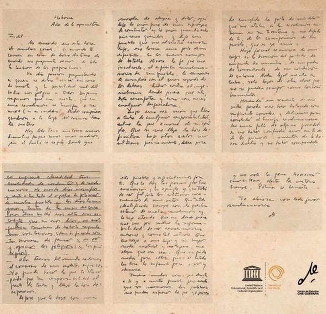 Es una de las frases más conocidas de la izquierda mundial. Y, quizás, la más popular de Ernesto "Che" Guevara.Por más de medio siglo, ha aparecido en canciones, murales, discursos, poemas, pancartas, edificios, obras de arte, camisetas y hasta tatuajes.Su origen es ampliamente conocido: el 3 de octubre de 1965, Fidel Castro leyó en público la carta privada que le envió Guevara poco antes de partir de La Habana.La misiva comienza, en modo nostálgico, rememorando la forma en que conoció a Castro "en casa de María Antonia", para luego, en un tono más dramático, renunciar a todos sus lazos y cargos en el gobierno de Cuba.Es el preámbulo para anunciar que parte a otras "tierras del mundo" que reclamaban "el concurso de sus modestos esfuerzos".La carta progresa: Guevara dice que no pide nada para su familia, le agradece a Castro por sus "enseñanzas" y "ejemplo", y, luego de seis folios, la lleva hacia el desenlace."Tendría muchas cosas que decirte a ti y a nuestro pueblo, pero siento que son innecesarias, las palabras no pueden expresar lo que yo quisiera y no vale la pena emborronar cuartillas", escribe, llevando la carta hacia su popular final."Hasta la victoria", continúa la siguiente frase, que queda interrumpida porque se le acaba el espacio a la izquierda del papel. Y, en la siguiente línea, comenzando con mayúscula: "Siempre, Patria o Muerte".En la noche del 3 de octubre de 1965, cuando Castro llegó a ese punto, leyó la frase como una sola."Hasta la victoria siempre. Patria o Muerte", leyó, casi sin énfasis."Te abraza con todo fervor revolucionario. Che".Detrás vinieron los aplausos, la conmoción, la carta publicada incansablemente, la frase convertida en mantra socialista, en versículo sublime de la propaganda de la Revolución cubana.Fue por más de dos años, el último vestigio inexplicable de Guevara, su última señal de vida hasta que apareció con la mirada helada y muerta en la foto de La Higuera, en Bolivia.Antes que él, su frase ya se había hecho Historia.Pero como tantas cosas en la Cuba de los Castro, algunos creen que su significado original se trastocó o se cambió y lo que unos y otros han repetido que Guevara dijo, no fue, realmente, lo que quiso decir.Según explica a BBC Mundo el historiador cubano Sergio Guerra Vilaboy, por más de 55 años, la carta de despedida de Guevara a Castro ha sido objeto de las más diferentes visiones e interpretaciones."Fidel la hace pública en 1965, cuando se estaba creando el Comité Central (del Partido Comunista de Cuba) y tenía que dar una explicación de por qué el Che, con todo su mérito, no aparecía allí y el gobierno no había dado una opinión", comenta el profesor de la Universidad de La Habana.De acuerdo con el experto, Guevara había dejado de ser una figura visible en la nomenklatura hacía ya un tiempo y, desde entonces, se habían esparcido rumores y teorías sobre su destino o su posible caída en desgracia."Se dieron muchas historias, de que si tuvo una bronca con Fidel, que si se dispararon y se tuvo que meter Celia Sánchez para pararlos. Y Fidel tenía que parar esos rumores", comenta.Sin embargo, de acuerdo con el historiador, de alguna forma, la lectura de la carta también cerró las puertas para un posible regreso de Guevara a la vida pública en Cuba."El Che se había ido a luchar al Congo, pero lo que está pasando es que en ese momento en que se lee la carta aquello en el Congo había fracasado y el Che se está retirando. Y al darla a conocer, se dice que el Che está luchado en otros territorios, cuando en realidad se estaba replegando ya", afirma."Creo que debe haber influido en su ánimo, porque eso lo comprometía a no volver a aparecer públicamente. Le dejaba el listón muy alto y lo obligaba a continuar a otra etapa de lucha", agrega.De cualquier forma, señala Guerra Vilaboy, Guevara había salido al Congo como una fase temporal hasta que se crearan condiciones en América Latina, que iba a ser su destino definitivo y por el que había apostado desde su juventud.La carta fue un paréntesis entre dos incómodos silencios: durante mucho tiempo nada se supo del Che antes de su lectura y nada se supo hasta hasta dos años y una semana después, el 9 de octubre de 1967, cuando las fotos del cadáver de Guevara dieron un portazo en la cara de los movimientos revolucionarios de Latinoamérica."En Cuba, después de que el Che no se ve más, hubo solo dos momentos: la carta y luego, el anuncio de su muerte", comenta Guerra Vilaboy.Sin embargo, cuenta que con el tiempo se supo que, tras la derrota de la guerrilla en el Congo y antes de viajar a Checoslovaquia y de ahí a La Habana para partir hacia Bolivia, Guevara viajó a Tanzania, donde se reunió con su última esposa, Aleida March.Fue en ese encuentro, según cuenta March en su libro de memorias Evocación: mi vida al lado del Che, cuando Guevara le contó "cuánto lamentó su error" al equivocarse en un signo de puntación en la carta que le envió a Castro.Y es que, de acuerdo con el testimonio de la viuda, la forma en la que la frase pasó a la historia no fue realmente la que le quiso dar el Che."Nunca olvidaré lo diáfano que fue cuando me expresó su convicción de que dondequiera que fuera a luchar después del Congo, incluso allí, su grito de guerra sería siempre el de su Revolución, la Revolución cubana: Hasta la victoria, siempre Patria o Muerte", escribe.Paso seguido March aclara que no se trata de un error de puntuación de su parte o de un intento de que cambie a estas alturas el sentido de la frase.Pero sutilmente, reitera que la forma en que Castro leyó la carta y como ha sido transcrita después estaba lejos en significado y contexto a lo que Guevara intentó escribir."Decidida a compartir algunos detalles que han dejado honda huella en mí, no puedo dejar de detenerme en este y transmitirles la fuerza con la que expresó lo que en realidad quiso decir y cuánto lamentó su error al poner la coma dond
