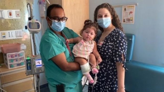 Alexandra Lovo López tenía poco más de 4 meses cuando, el 19 de marzo, en pleno auge de la pandemia de covid-19, debió ser hospitalizada en Nueva York.La ciudad era entonces uno de los epicentros de la enfermedad causada por el nuevo coronavirus.Poco tiempo después de nacer, la bebé había sido diagnosticada con cardiomiopatía dilatada, un debilitamiento del músculo cardíaco que reduce su capacidad de bombear sangre.Luego de intentar sin éxito tratar el problema con medicamentos, los médicos constataron que la niña necesitaría un trasplante de corazón para sobrevivir.Alexandra fue entonces transferida al hospital infantil Kravis, parte de la red del hospital Monte Sinaí en Nueva York."En algunos niños, la cardiomiopatía dilatada es leve y puede ser tratada con medicamentos. Pero hay casos más extremos como el de Alexandra", dijo a BBC News Brasil la directora médica de trasplantes cardíacos pediátricos del hospital, Lauren Glass."Creemos que sin un trasplante ella no habría vivido mucho", afirmo la médica.En los meses siguientes, la niña pasó por una larga espera hasta conseguir un donante compatible y finalmente recibir el nuevo corazón.Glass destacó que realizar una cirugía de esta magnitud en una bebé ya es complejo en tiempos normales.Pero Alexandra, su familia y el equipo médico debieron superar varios obstáculos adicionales debido a la pandemia."No podíamos esperar", le dijo a BBC News Brasil la madre de la niña, Victoria López, de 23 años, sobre el diagnóstico de su única hija."Cuando dijeron que su corazoncito estaba muy grande y delicado y precisaba un trasplante, eso me dolió mucho", recordó la madre.Alexandra estaba muy enferma cuando llegó al hospital, según Glass."Ella tenía dificultad para respirar y baja presión sanguínea. Tenía un tubo de respiración y necesitaba muchos medicamentos para permanecer sedada. No podía estar despierta porque eso sería simplemente demasiada presión par su cuerpo", afirmó la médica.Al mismo tiempo, el equipo médico de Monte Sinaí estaba sobrecargado por la pandemia. Muchos pediatras habían sido transferidos en forma temporaria a tratar adultos con covid-19.Una semana después de llegar al hospital, Alexandra fue sometida a una cirugía apara implantar un dispositivo de asistencia ventricular llamado "Berlin heart" o "corazón de Berlín", que ofrece apoyo mecánico al corazón, sustituyendo algunas funciones del órgano y ayudándolo a bombear sangre.El dispositivo ayudó a mantener a Alexandra con vida mientras los médicos buscaban un donante compatible.Pero la operación, según los médicos, dejó a la niña "extremadamente vulnerable" a infecciones, por lo que el equipo multidisciplinar responsable de su tratamiento en la unidad de cuidados intensivos tuvo que redoblar la vigilancia, en momentos en que Nueva York registraba miles de nuevos casos diarios de covid-19.Incluso antes del coronavirus, encontrar un donante compatible para un trasplante de corazón en un bebé como Alexandra solía llevar varios meses o hasta un año, según Glass.La médica explicó que varios aspectos debían ser tomados en cuenta, como el tamaño del órgano, que no puede ser ni mucho mayor ni mucho menor que el del receptor.El 9 de julio, cuatro meses después de que Alexandra llegara al hospital infantil Kravis, el equipo médico halló un corazón para la niña. Pero había un problema: el donante tenía un tipo de sangre incompatible.Para permitir que Alexandra pudiera recibir el trasplante sin alto riesgo de rechazo, la niña debió recibir antes varias transfusiones sanguíneas."Inmediatamente antes del trasplante, debimos extraer su sangre y sustituirla por una sangre diferente, lo que nos permitió retirar algunos de los anticuerpos que normalmente podrían atacar un corazón que viene de una persona con un tipo sanguíneo diferente", señaló la médica.Glass destacó que el banco de sangre del hospital tuvo que trabajar sin parar con el fin de garantizar el éxito de la operación.Los médicos debieron realizar además varios tests al nuevo corazón para garantizar que el donante no estaba infectado con covid-19.Luego de constatar que el órgano era seguro, el equipo de expertos finalmente pudo realizar el trasplante.La cirugía fue considerada un éxito. Los médicos aseguran que Alexandra se está recuperando bien y que no hay ningún indicio de rechazo del nuevo corazón."Quedamos muy satisfechos. Su nuevo corazón comenzó a funcionar bien inmediatamente", señaló el director quirúrgico de trasplantes cardíacos pediátricos, Raghav Murthy, quien lideró junto a Glass el equipo a cargo del tratamiento.Ahora, pocos días antes de cumplir 10 meses de edad y después de pasar la mitad de su vida en el hospital, la niña se fue a su casa para estar al lado de su madre, de su padre, Santos Lovos, y del resto de la familia, en el barrio de Queens, en Nueva York.La niña aún debe ser monitoreada y requerirá diferentes terapias. Como era muy pequeña cuando fue internada y pasó la mayor parte de su vida en cama y sedada, Alexandra no tuvo el tiempo necesario para desarrollar las mismas habilidades que otros bebés de su edad."Ella aún no puede caminar y aún no puede comer por la boca", contó la madre.Pero los médicos y la familia esperan que la niña supere pronto esos desafíos y recupere el tiempo perdido.Al igual que otros trasplantados, Alexandra deberá tomar medicamentos el resto de su vida para evitar que su organismo rechace el nuevo corazón. Pero Glass afirmó que luego de un año, el número de medicamentos disminuye."Ella tiene una apariencia óptima. Sonríe, juega, interactúa", observó la médica. "El objetivo es que tenga una vida normal, con algunas visitas al médico de vez en cuando".Durante su larga estadía en el hospital, la bebé conquistó a médicos y enfermeros."Estaban muy apegados a Alexandra, la trataron con mucho cariño", recordó la madre.Glass relató que, en 