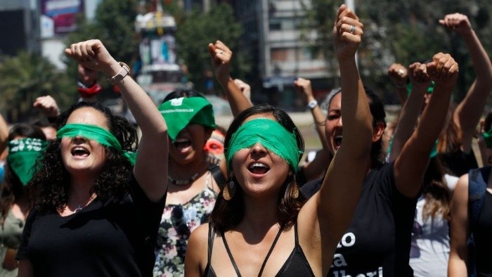 Con banderas de Chile y el puño en alto, decenas de miles de personas entonaron el viernes pasado en Santiago la emblemática canción de protesta "El pueblo unido jamás será vencido".La escena ocurrió en Plaza Italia, el principal lugar de reunión de las manifestaciones en este país sudamericano que hace dos meses ha sido protagonista de una intensa revuelta social que exige mayor "dignidad" y terminar con los "abusos" del sistema político y económico actual.Para muchos chilenos, que esta melodía vuelva a resonar en las calles del país tiene un potente significado.Inevitablemente trae recuerdos de la época del presidente Salvador Allende, quien fue derrocado en 1973 por un golpe militar. Fue justamente por esos días cuando nació esta simbólica canción que más tarde se convirtió en un emblema mundial de lucha y resistencia.Transcurría el año 1973 en Chile y la situación política estaba extremadamente polarizada. El gobierno de la Unidad Popular, liderada por Allende, vivía momentos difíciles e incluso se rumoreaba la posibilidad de una guerra civil.Marchas, cacerolazos, paros y multitudinarias protestas eran la tónica de esos días.Fue entonces cuando, en medio de la ebullición, el compositor y pianista chileno, Sergio Ortega, decidió crear una canción con el fin de participar de alguna u otra manera de lo que estaba sucediendo. Esto, con la colaboración del grupo musical folclórico Quilapayún, activo simpatizante y defensor de Allende.El percusionista Carlos Quezada es uno de los históricos integrantes de la banda. Desde Francia -donde vive desde el 73, exiliado por el régimen militar de Augusto Pinochet- le cuenta a BBC Mundo parte de la historia detrás de "El pueblo unido jamás será vencido"."La situación política chilena era grave. Ante esto, ¿qué podíamos hacer nosotros? Pensamos que responder a través de una canción que reflejara un espíritu mayoritario y pacífico era lo correcto", explica.La primera vez que la cantaron -recuerda Quezada- fue solo tres meses antes del golpe y frente al palacio de gobierno de Chile -denominado La Moneda-, en el contexto de una marcha de mujeres "allendistas". Lo hicieron con el texto en la mano, pues no se sabían la letra de memoria.Cuarenta y seis años después de aquel momento, Quezada no olvida la emoción que sintió:"Fue muy emocionante. Nosotros nos defendíamos a través de canciones, era nuestra única posibilidad", dice."Sentíamos que teníamos la responsabilidad de generar conciencia en la gente, a través de la música, para evitar el infierno que de todas maneras llegó algunos meses después", agrega, en referencia al golpe de Estado del 11 de septiembre de ese año.Además de "El pueblo unido jamás será vencido", Quilapayún creó otras diez canciones que tenían que ver con el momento político chileno. "Estábamos como en un juego de pin-pon, mientras se iba desarrollando el caos político en Chile, nosotros respondíamos con canciones", señala.Pero luego del golpe militar, todo cambió. Los miembros de Quilapayún tuvieron que vivir en el exilio durante los años que duró el régimen de Pinochet (17 años en total).Las libertades en Chile se terminaron y, como era de esperar, la canción no volvió a resonar públicamente como antes. Esto no significó, sin embargo, que la melodía quedara enterrada con los recuerdos de la Unidad Popular.La carrera musical de Quilapayún en el extranjero siguió con éxito y "El pueblo unido jamás será vencido" comenzó a contagiarse en varios países, especialmente en Francia, donde varios vivían en el exilio, y Alemania.En varios de los conciertos que ofrecieron internacionalmente, el público les pedía terminar con esta canción. Así sucedió, por ejemplo, en Londres en septiembre de 1975, en medio de un tributo al cantautor chileno Víctor Jara."Siempre nos piden que terminemos con esta canción; llevo 50 años en la banda y creo que la he cantado más de mil veces", dice Quezada.Así, poco a poco se fue convirtiendo en un himno de protesta mundial. Algo que no estaba para nada contemplado en los planes de Quilapayún."No la hicimos para que después se convirtiera en la canción emblema. La hicimos simplemente para que Chile no entrara en guerra civil porque hubiera sido un desastre", recuerda Quezada.La canción sigue vigente hasta el día de hoy. De hecho, durante las recientes protestas de los "chalecos amarillos" en Francia, resonó en varias de las reuniones de los manifestantes. También ha pasado en otros lugares completamente alejados de Latinoamérica, como Irán.En cuanto a Chile, volvió a escucharse una vez terminado el régimen de Pinochet.Para el plebiscito, por ejemplo, Quilapayún participó en algunas de las campañas finales por el No, donde se tocó la melodía aunque no con la misma fuerza que antes.Salvador Allende decía que "no hay revolución sin canciones".Carlos Quezada comparte esta afirmación. "Es una manera de reclamar más justicia. Ahora, en Italia, el movimiento de las sardinas se reúne y canta al unísono la canción 'Bella Ciao'. El pueblo siempre ha utilizado el canto para reivindicarse", apunta.Algo de eso está ocurriendo hoy en Chile, no solo con el renacimiento de esta canción, sino también con la creación de "Un violador en tu camino", del colectivo Las Tesis."El arte y la cultura es lo que nos va a salvar finalmente. Y es así como siempre ha sido, cuando la gente se reúne para defenderse", opina Quezada.El percusionista añade que para él es un "orgullo" que la melodía creada por Sergio Ortega se entone de nuevo."El pueblo unido está en el fundamento de este movimiento que se produjo en Chile. Me produce un placer enorme que se vuelva a cantar", dice."Hay muchas canciones que tú creas y que después se mueren solas. Hay otras que no sabes por qué se transforman en algo más de lo que tú pensaste. Y ese es el caso del pueblo unido", agrega.¿Pero no es también triste que se cante ahora,
