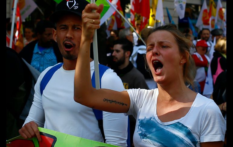 PARÍS, FRANCIA.- Decenas de miles de opositores a la reforma del código laboral del presidente francés Emmanuel Macron volvieron a salir a las calles este jueves para exigir el retiro del proyecto, que consideran una regresión de los derechos de los trabajadores."Macron, marioneta de los patrones", se podía leer en una pancarta enarbolada por una de las miles de personas que comenzaron a desfilar al mediodía local en la capital francesa y en las principales ciudades del país, en medio de una nube de banderas sindicales y globos multicolores.Las manifestaciones reunieron el jueves 132 mil personas en toda Francia, según el ministerio del Interior, frente a 223 mil en la primera gran jornada del 12 de septiembre.El sindicato CGT, que calculó en 500 mil los manifestantes en Francia el 12 de septiembre, reconoció que el número de manifestantes fue "un poco inferior", sin dar cifra."Estamos decididos, estas ordenanzas no deben pasar. Es un verdadero drama para los jóvenes del país", declaró este jueves Philippe Martinez, líder del sindicato CGT.Tras la acción de los sindicatos llegará el turno de la acción política, con otra manifestación convocada el sábado por la izquierda radical.El movimiento Francia Insumisa de Jean-Luc Mélenchon juró que aniquilará esta reforma, que considera como un "golpe de Estado social".Pero pese a una abrupta caída en los sondeos, Macron no tiene intención de ceder sobre esta reforma, que fue una de sus principales promesas de campaña."Creo en la democracia pero la democracia no es la calle", zanjó el jefe de Estado el martes en una entrevista con la cadena CNN Internacional."Respeto a los manifestantes, pero respeto también a los electores franceses que votaron por el cambio", agregó el centrista, cuyo partido obtuvo una holgada mayoría en la Asamblea Nacional, en junio.Se espera que el sábado se manifieste nuevamente la izquierda radical.manifestación convocada el sábado por la izquierda radical.