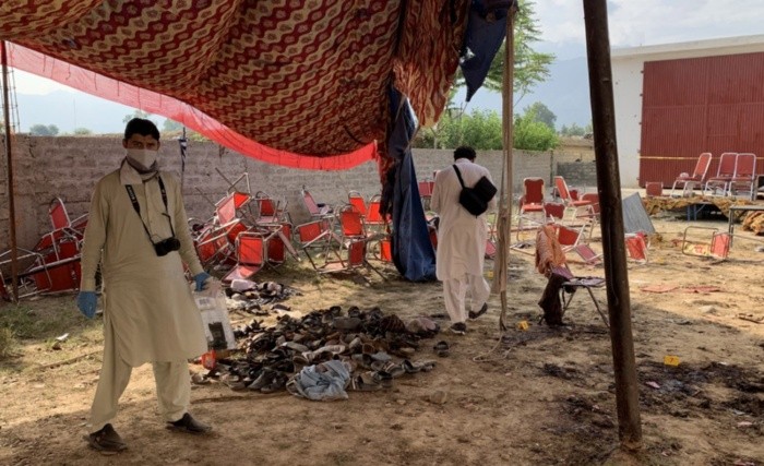 Una filial afgana del grupo Estado Islámico se atribuyó este lunes la responsabilidad de un atentado suicida en Pakistán que causó la muerte de por lo menos 54 personas en un mitin electoral pro Talibán, en uno de los peores ataques en la región en los últimos años.El Estado Islámico en la provincia de Jorasán se adjudicó el atentado en un comunicado publicado en su sitio web Amaq. Indicó que el atacante detonó un chaleco explosivo y que el estallido en el poblado de Bajur, en el noroeste paquistaní, fue parte de la continua guerra de la organización contra las formas de democracia que considera que van en contra del Islam.Este lunes, cientos de dolientes en Bajur cargaban féretros envueltos en coloridos tejidos hacia sus tumbas luego del ataque del día anterior durante un evento electoral para el partido Jamiat Ulema Islam. Funcionarios dijeron que el atentado del domingo dejó 54 muertos, incluidos al menos cinco niños, y casi 200 heridos.El ataque pareció reflejar las divisiones entre grupos islámicos, los cuales tienen una fuerte presencia en dicho distrito, el cual se ubica en la provincia de Jaiber Pastunjuá que colinda con Afganistán. El partido Jamiat Ulema Islam tiene vínculos con el Talibán de Afganistán y con el de Pakistán.Al menos mil personas se encontraban congregadas dentro de una carpa cerca de un mercado para presenciar el evento previo a las elecciones de fin de año, según la policía."Las personas gritaban 'Dios es grande' mientras llegaban los dirigentes", comentó Khan Mohammad, un residente local quien dijo que se encontraba afuera de la carpa, "y fue entonces que escuché el ensordecedor sonido de la bomba".Mohammad dijo que escuchó a personas suplicando por ayuda, y minutos después llegaron las ambulancias y comenzaron a llevarse a los heridos.En su investigación inicial, la policía había insinuado que el grupo Estado Islámico en la provincia de Jorasán era uno de los sospechosos. El grupo tiene su sede en la vecina provincia de Nangarhar, Afganistán, y es enemigo del Talibán afgano y de Al Qaeda.El analista de seguridad pakistaní Mahmood Shah también había dicho previamente que facciones disidentes del Talibán paquistaní podrían ser sospechosas, aunque el grupo se distanció del atentado.Las fuerzas armadas de Pakistán pasaron años combatiendo al Talibán paquistaní, también conocido como Tehreek-e-Taliban Pakistán o TTP, en Bajur antes de declarar que el distrito se encontraba libre de extremistas en 2016. Pero el partido Jamiat Ulema Islam, encabezado por el clérigo de línea dura Fazlur Rehman, se ha mantenido como una importante fuerza política.CR