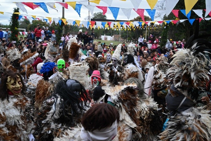 Cubiertos de plumas de gallinas y pájaros, cientos de feligreses católicos salieron el miércoles a las calles de una comunidad en Paraguay para agradecer a su patrono las bendiciones en su vida.En la compañía Minas -como se conoce localmente a un condado del municipio de Emboscada, ubicado en el departamento Cordillera, a 44 kilómetros al norte de Asunción- se llevó a cabo la fiesta en honor a San Francisco Solano, fraile español fallecido en Lima en 1610. Como parte de la celebración, hombres, mujeres, adolescentes y niños paraguayos disfrazados de pájaros desfilaron con caretas y trajes que confeccionaron ellos mismos.De acuerdo a Modesto Martínez, un cura párroco de la cercana ciudad San Bernardino que dice llevar en la sangre "el fervor por estos disfraces", la historia de la congregación franciscana señala que cuando el fraile estaba en su lecho de enfermo, varios pajaritos se posaron cantando en su ventana."Es probable que el hecho, si fue real, haya despertado en la feligresía la creencia de que San Francisco Solano es un protector de las aves. La religiosidad popular no tiene una explicación dogmática rigurosa", indicó el sacerdote a The Associated Press.Los devotos del fraile no dudan en celebrar los milagros que le atribuyen.María Estela Pereira, una mujer viuda de 52 años que tiene once hijos, desfiló frente a su capilla caminando lentamente pero sin titubear. "Sufro de artritis y desde hace cuatro años, luego de orar pidiéndole a San Francisco Solano que me permitiera moverme de un lado a otro sin dolores, se hizo el milagro y cada año vengo a desfilar en su honor como agradecimiento".Para el traje que llevó en esta ocasión, dice que utilizó las plumas de seis gallinas de las más de 30 que tiene en su corral.El religioso español -canonizado en 1726 por el Papa Benedicto XIII- nunca estuvo en Paraguay, por lo que las historias detrás de la devoción de los paraguayos hacia él son variables.Pedro Balbuena, un hombre de 71 años que camina con muletas, relata que en Minas "hacia comienzos del siglo XX, vivía una mujer llamada Dominga Machuca, que difundió la veneración por el santo como un protector de las aves. Ella tenía en su vivienda una imagen de San Francisco Solano".Según Balbuena, quien también es líder de la banda de músicos de la capilla desde hace 30 años, también existe otra leyenda: cuando llegaron los soldados españoles y organizaron la comunidad, ésta era constantemente asaltada por guerreros de la etnia Guaicurú, quienes robaban comida y mujeres jóvenes."Como eran supersticiosos, los pobladores se disfrazaron de pájaros para asustarlos y así dejaron de molestar".JM