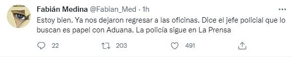 Efectivos de la policía de Nicaragua ingresaron el viernes a la sede del diario La Prensa, denunció el periódico en sus redes sociales.El diario —el más antiguo del país y de perfil abiertamente crítico al gobierno sandinista de Daniel Ortega— publicó videos donde se observan varios policías en el estacionamiento de la empresa. La Prensa había reportado el jueves la retención de casi 100 toneladas de papel por parte de la aduana, lo que lo obligó a suspender su edición impresa a partir de hoy.La policía informó más tarde en un comunicado que inició una investigación al medio por los supuestos delitos de "defraudación aduanera, lavado de dinero y activos"."A mediodía la policía se tomó La Prensa, cerraron los portones y no dejan entrar ni salir a nadie", dijo a la AP el periodista Eduardo Cruz, quien llegaba a su lugar de trabajo al momento de la intervención policial.El jefe de información, Fabián Medina, que estaba dentro del edificio, dijo vía Twitter que los agentes policiales "buscaban papel" que se utiliza para imprimir el diario. Indicó que posteriormente los policías permitieron a los periodistas regresar a sus oficinas, pero continúan en el edificio.Si te interesó esta noticia y quieres saber más, entonces descarga y descubre INFORMAPlus, la aplicación digital de EL INFORMADOR, en donde tenemos contenidos exclusivos, seleccionados por nuestros editores, para darles una experiencia más completa a los lectores.Descarga la aplicación y pruébala GRATIS por treinta días.Para iOS: https://apple.co/35jaVgbPara Android: https://bit.ly/3gwVSEVSi eres suscriptor de EL INFORMADOR tu acceso está incluido, solicítalo al 33 3678-7777MB