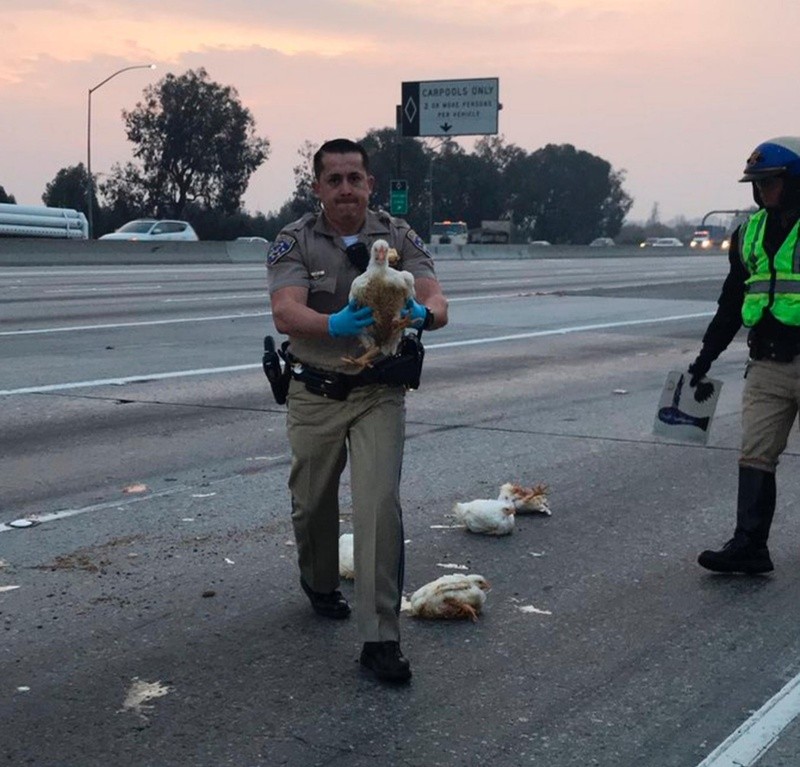 Un grupo de pollos invadieron esta mañana una parte de la autopista interestatal 605 en la ciudad californiana de Norwalk, Estados Unidos.La Patrulla de Autopistas de California (CHP) reportó que las aves cayeron de la parte trasera de una camioneta y corrieron por unos carriles de la vía rápida.Ante la obstrucción, oficiales de la CHP intervinieron para rescatar a un total de 17 pollos. Dos de ellos murieron.Con información de APIM
