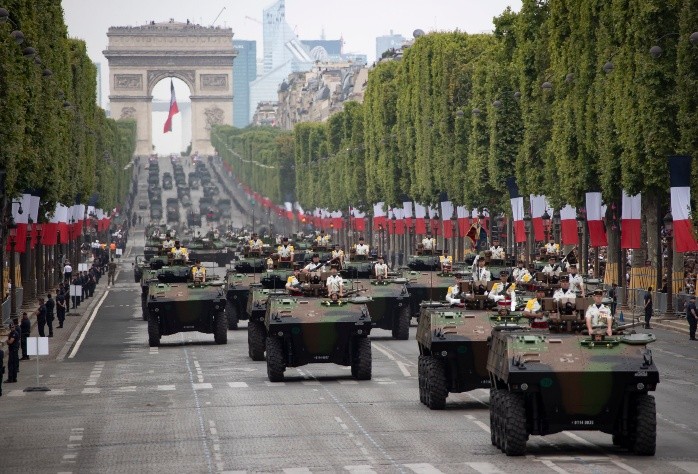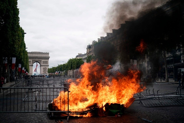 El presidente de Francia, Emmanuel Macron, encabezó el domingo la celebración anual del Día de la Bastilla, en la que destacó un soldado que flotaba por el aire en una tabla especial y algunos enfrentamientos entre la policía y manifestantes del movimiento de los chalecos amarillos.Aunque la celebración incluyó más de cuatro mil elementos de las fuerzas armadas, 69 aviones y 39 helicópteros, lo que más cautivó a los espectadores fue el hombre en la tabla, creada por el excampeón de esquí acuático Franky Zapata.El desfile de este año destacó la cooperación militar de Europa. Las banderas de los 10 países que forman parte de la Iniciativa de Intervención Europea, un pacto militar creado el año pasado, encabezaron el desfile que recorrió la avenida parisina de los Campos Elíseos. La canciller alemana Angela Merkel dijo que la invitación para celebrar el feriado nacional de Francia es un “símbolo de una cooperación europea intensificada” y un “gran gesto hacia la política militar europea”.En el desfile del Día de la Bastilla de 2017, el presidente estadounidense Donald Trump, quien era invitado de honor, quedó tan impresionado de lo que había visto que ordenó un desfile militar en Washington para las celebraciones del Día de la Independencia de Estados Unidos.Sin embargo, las tensiones en las calles continuaron tras meses de protestas de los manifestantes del movimiento de los chalecos amarillos, quienes están en contra del gobierno de Macron y que quieren más ayuda para los trabajadores franceses.Varios cientos de activistas, que no portaban su distintivo chaleco amarillo fosforescente, se reunieron en la orilla de la ruta del desfile y se vieron involucrados en enfrentamientos con la policía.Unas imágenes transmitidas en la televisión mostraron a la policía deteniendo a uno de los líderes del movimiento, Eric Drouet, mientras estaba parado pacíficamente en un costado de la ruta y lo escoltaron lejos de la zona.En tanto, Macron fue el anfitrión de un almuerzo en el Palacio del Elíseo con otros mandatarios europeos.LS