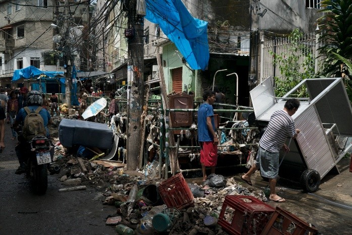 Los cariocas amanecieron este jueves en una ciudad inundada y colapsada a causa de una fuerte tempestad de lluvia y viento que arreció durante la noche en Río de Janeiro, Brasil, y que se saldó con seis muertos e incontables destrozos materiales.Las imágenes en la ciudad eran devastadoras, el paseo de las famosas playas de Copacabana e Ipanema estaba plagado de árboles caídos que entorpecían el paso, la lluvia también arrancó los toldos de los puestos de la playa y la basura y el barro se acumularon en diversos puntos de la ciudad.Sobre las 20.30 hora local del miércoles empezó una tormenta con vientos de hasta 110 kilómetros por hora, que causó inundaciones, apagones y deslizamientos de tierras en varios barrios y que acabó con seis víctimas y 80 mil familias en áreas de riesgo.En Sao Conrado, un barrio noble de la zona sur de Río de Janeiro, Fabio Silva vio como su coche era arrastrado por la lluvia, Silva lo aparcó y acudió a la Iglesia, y en ese margen de tiempo el carro fue revolcado hasta quedar finalmente suspendido de un bolardo.Cerca de este lugar, en la ciclopista de Sao Conrado una parte de la carretera de desplomaba, sin causar víctimas mortales.En la Rocinha, la mayor favela de Río de Janeiro, sus habitantes se esforzaban en limpiar el barro, los destrozos y las basura que se acumuló durante toda la noche en sus calles, inundando varios negocios de la zona.La ciudad de Río de Janeiro está en estado de alerta por las fuertes tormentas y varios puntos de la capital siguen inundados, mientras los bomberos trabajan para liberar las vías y retirar los desperfectos causados por las lluvias.Mientras las autoridades brasileñas explicaron que en cuatro horas cayó la lluvia esperada para todo el mes de febrero, el alcalde de la capital fluminense, Marcelo Crivella, ha decretado tres días de luto oficial.IM