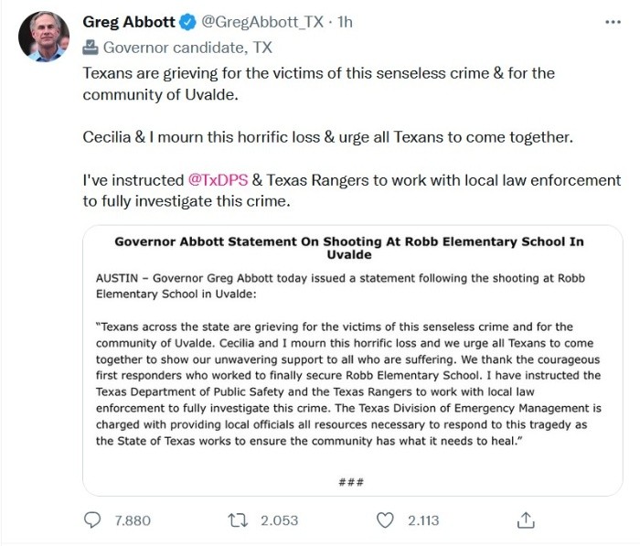 El presidente de Estados Unidos, Joe Biden, ordenó este martes que las banderas del país ondeen a media asta por el tiroteo perpetrado en una escuela de primaria de la localidad de Uvalde (Texas), donde un joven mató a 14 niños y a un profesor.Biden, quien está regresando a su país tras su gira por Asia, ordenó que la bandera de Estados Unidos ondee a media asta en la Casa Blanca, así como en todos los edificios oficiales, instalaciones militares y buques de guerra hasta la puesta de sol del próximo 28 de mayo.En un comunicado, anunció que tomó esta decisión como "muestra de respeto por las víctimas de los actos de violencia sin sentido perpetrados el 24 de mayo de 2022 por un tirador en la escuela primaria Robb en Uvalde, Texas".Se espera que el presidente dé un discurso a la nación hoy alrededor de las 20:15 hora local al llegar a la Casa Blanca.Al menos 16 personas murieron este martes, entre ellas 14 niños, además de un profesor y el atacante, en un tiroteo en una escuela de primaria de la localidad texana de Uvalde.El gobernador de Texas, Greg Abbott, explicó en una rueda de prensa que el agresor, identificado como Salvador Romas, de 18 años, entró con un arma de mano, y posiblemente con un rifle, en el centro Robb Elementary School, de la localidad de Uvalde, a unos 133 kilómetros de San Antonio.El atacante "disparó y mató de manera horrible e incomprensiblemente a 14 estudiantes y a un profesor", dijo el gobernador.Poco después, Romas, que residía en Uvalde, fue abatido por los agentes de policía que acudieron al lugar de los hechos, agregó Abbott.JM