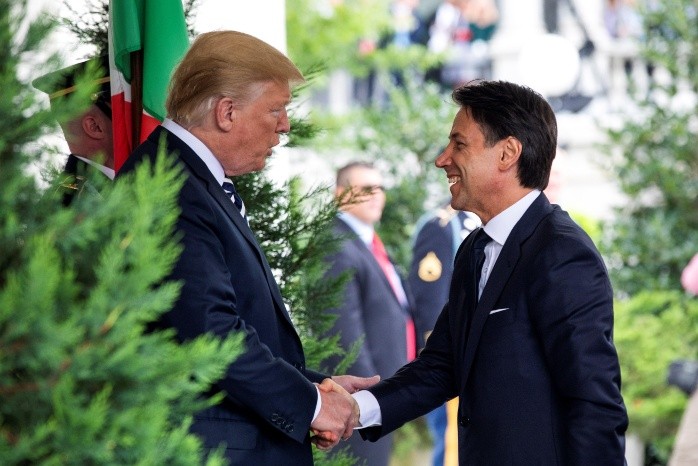El presidente Donald Trump se ha reunido con el primer ministro italiano Giuseppe Conte en la Casa Blanca en un momento en que Estados Unidos inicia una nueva ronda de conversaciones comerciales con la Unión Europea.Trump dijo al inicio de su reunión con Conte que Italia "ha tomado una postura muy firme en la frontera". Agregó que los otros países europeos deberán seguir la iniciativa de Italia en temas migratorios.Conte dirige la coalición de euroescépticos formada por el nuevo Movimiento 5 Estrellas y el partido de derecha La Liga basado en el norte.Bajo el nuevo gobierno de Conte, Italia ha presionado a la Unión Europea para aceptar decenas de miles de migrantes que atraviesan el mar Mediterráneo cada año.Trump mencionó el déficit comercial de Estados Unidos con Italia y dijo que está seguro que "arreglaremos eso muy pronto".Conte agradeció a Trump por su "cálida hospitalidad". En respuesta, Trump le dijo "usted siempre será tratado amablemente".Trump y funcionarios de la UE evitaron una creciente guerra comercial la semana pasada y se espera que inicien negociaciones con el objetivo de evitar los aranceles en los automóviles y eliminar las barreras comerciales.La Casa Blanca ha señalado que Italia es un importante aliado de la OTAN y un socio clave de las fuerzas estadounidenses en Afganistán e Irak.JB