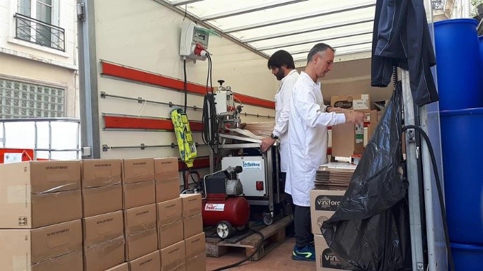 En una céntrica calle de París, robada temporalmente a los viandantes, ha florecido una fábrica de gel desinfectante de manos para paliar la escasez de este producto básico para combatir la pandemia de COVID-19.Hasta 10 mil litros al día de este líquido han salido de la improvisada industria levantada por un farmacéutico de la capital para tratar de hacer frente a la demanda de un producto que se agotó en la mayoría de las boticas de la ciudad en los primeros momentos de la crisis del coronavirus."Nosotros no producíamos este tipo de geles, pero la Organización Mundial de la Salud (OMS) pidió a todos los farmacéuticos que pudieran que lo hicieran", explica a Efe el director de la farmacia Delpech, Frabian Bruno, artífice de la planta.La demanda fue tal que los locales de su farmacia se quedaron pronto pequeños y decidieron lanzarse a una producción a mayor escala que permitiera abastecer a otros colegas de la ciudad.En tiempos de confinamiento, fue difícil encontrar instalaciones que acogieran el negocio a lo grande, así que optaron por sacar a la calle sus herramientas."Los vecinos nos apoyan y nos ayudan en todo lo que pueden", asegura Bruno, pese a que la vía ha quedado parcialmente cortada y los transeúntes están obligados a tomar un pequeño pasillo en la acera para acceder a sus viviendas.También recibieron enseguida el aval de las autoridades, que vieron con buenos ojos la iniciativa a pesar de la invasión del espacio público.El perímetro de la producción está circunscrito por bidones de plástico en los que en un primer momento llegaba el alcohol, principal materia prima de gel desinfectante. Ahora están llenos de agua para prevenir posibles incendios.Hasta ese punto del centro de la ciudad, a pocos pasos del turístico barrio Latino, ahora desierto de turistas, llegan los camiones de alcohol. Desde hace unas semanas vienen en unos depósitos especiales para el transporte de líquidos que facilitan la labor de mezcla que hace el equipo de Bruno.Una quincena de operarios se encarga de elaborar la muestra siguiendo los porcentajes que la OMS ha marcado para lograr el máximo de eficacia del producto en la desinfección bacteriana y vírica, sobre todo pensando en el resistente coronavirus.Con el tiempo, la farmacia se encontró con un segundo problema: imposible encontrar en el mercado envases para dar salida al producto elaborado.El ingenio de Bruno encontró a eso una solución inesperada en el mundo vinícola: el uso de recipientes de plástico y cartón de cinco litros que se utilizan para la comercialización del vino de mediana calidad."Hay mucho en el mercado, se almacena bien y nos facilita la distribución", apunta Bruno, que asegura que ese hallazgo les permitió poder seguir sirviendo gel a sus clientes.Estos son en su mayor parte farmacéuticos, que se llevan las cajas y lo distribuyen a los compradores que llegan ya con su propio recipiente."Además de que encontramos una solución, es ecológico y, por ahora, no tenemos problemas de abastecimiento", indica Bruno.También han servido gel a hospitales y a las fuerzas del orden que vigilan en la capital.Mohamed Ketani trabaja desde hace años en la farmacia Delpech y recuerda ahora la demanda que les desbordó los primeros días."Cuando no faltaba una cosa, faltaba la otra", asegura este francés que estudió en España.La producción se ha moderado en los últimos días, porque muchos industriales, empresas del sector cosmético y de otros orígenes, han comenzado también a producir este tipo de geles de forma masiva, lo que ha atenuado la demanda que llega hasta la improvisada planta."Estamos ahora en unos siete mil litros diarios", cuenta Ketani, que sin embargo afirma que todavía no van a desmontar las instalaciones levantadas en la calle.El Gobierno francés les ha pedido que mantengan el dispositivo, porque se espera que cuando se levante el confinamiento la demanda registre un repunte.Las empresas que empiecen a abrir comprarán gel para sus empleados, al igual que las escuelas si, como ha adelantado el presidente, Emmanuel Macron, comienzan a recibir alumnos a partir del 11 de mayo."Estamos listos. Ya tenemos la experiencia y la capacidad de producción. Podemos incrementar la oferta de forma sencilla", señala Bruno.JM