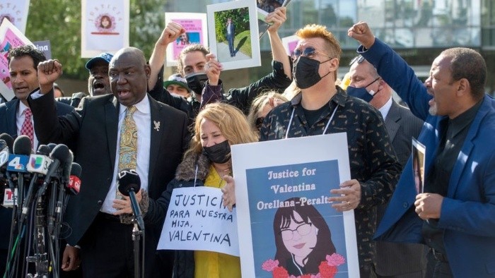 Soledad Peralta solo pudo pronunciar unas pocas palabras, entre lágrimas, hasta que dijo: "No puedo más".Intentaba describir este martes cómo su hija, Valentina Orellana Peralta, de 14 años y originaria de Chile, murió el 23 de diciembre al recibir una bala perdida de un policía durante un tiroteo ocurrido en un centro comercial de Los Ángeles, California.Su breve testimonio fue desgarrador: "Escuchamos gritos. Nos sentamos en un asiento, abrazadas, rezando, cuando algo impactó a mi hija Valentina", dijo en una conferencia de prensa este martes."Y murió en mis brazos. No pude hacer nada".La niña fue víctima de los disparos que efectuó un agente del Departamento de Policía de Los Ángeles (LAPD) el pasado jueves al neutralizar a un hombre que presuntamente cometía un asalto en la tienda Burlington Coat Factory, en el barrio de North Hollywood.Según muestran los videos de las cámaras de los agentes, publicados por LAPD, el sospechoso había causado heridas a una mujer y estaba acorralado cerca de los probadores de ropa cuando recibe los disparos del agente.Pero entonces se escuchan gritos desde el interior del probador donde estaban resguardadas Soledad Peralta y su hija Valentina.El caso ha generado un gran escrutinio sobre la actuación de los agentes de LAPD y demandas de justicia por parte de la familia Orellana Peralta."Lamento profundamente la pérdida de la vida de esta joven y sé que no hay palabras que puedan aliviar el dolor inimaginable de la familia", dijo el jefe de la policía, Michel Moore, quien se comprometió a investigar el caso.La policía de Los Ángeles llegó a la tienda Burlington Coat Factory tras recibir varias llamadas de alerta sobre un posible asalto con un arma mortal y avisos de disparos en la tienda.Los agentes encontraron a un sujeto, identificado como Daniel Elena López, y una mujer que estaba herida.Como muestran los videos de la policía, había varios elementos que acorralaban al sospechoso cuando un agente más de la LAPD llega a la tienda con un rifle de alto poder."La víctima cayó", se escucha gritar a un policía, refiriéndose a la mujer agredida por el hombre."Oye, despacio, despacio, déjame apuntar con el rifle", dice el agente que llega a la escena, pidiendo a sus compañeros espacio para perseguir al sospechoso.Uno le indica que el objetivo está "cerca del probador".En el instante en que el agente tiene en la mira al sospechoso, hace tres disparos.Al menos una de esas balas atravesó la pared donde estaban Valentina Orellana y su madre, según las primeras investigaciones.Los agentes encontraron a la adolescente muerta después de ver un agujero en la pared, explicó el subdirector del LAPD, Dominic Choi. Asegura que la niña nunca estuvo a la vista de los policías.Elena López, de 24 años, también murió unos minutos después por los impactos de bala. La otra mujer herida no ha sido identificada.El abogado Rahul Ravipudi, que representa a la familia Orellana Peralata, pidió al LAPD publicar todo el video de la escena y que el agente que hizo los disparos rinda cuentas.Y es que las autoridades no han mostrado qué pasa después de que el sospechoso es abatido. Solo se aprecia a varios agentes dirigiéndose al probador mientras se escuchan gritos desgarradores en el fondo."No había ninguna arma, no había un tirador activo, por lo que puede haber múltiples problemas, una falla del sistema", dijo Ravipudi en la conferencia de prensa en la que la familia demandó justicia.El padre de la menor, Juan Pablo Orellana, explicó que su hija estaba desde hace seis meses en EE.UU. intentando establecerse en ese país."Ella lo único que quería era ser ciudadana americana. Yo le dije: 'Vámonos de este país'. Me dijo: 'No, papá, este país es el más seguro del mundo, el país de las oportunidades'", dijo Orellana entre sollozos este martes.El agente no ha sido identificado, pero LAPD dijo que está fuera de servicio a la espera de una revisión del caso.En un comunicado, el jefe Michel Moore prometió transparencia en las investigaciones y afirmó que "este incidente caótico que resultó en la muerte de una niña inocente es trágico y devastador para todos los involucrados".La Oficina del Fiscal General de California, Rob Bonta, informó que está investigando el incidente."El ver morir a tu hijo o hija en tus brazos es uno de los dolores más grandes y profundos que un ser pueda imaginar", lamentó Soledad Peralta."Estaba llena de alegría, tenía grandes sueños para su futuro. Le quedaba mucha vida por vivir".Ahora puedes recibir notificaciones de BBC Mundo. Descarga la nueva versión de nuestra app y actívalas para no perderte nuestro mejor contenido.JM