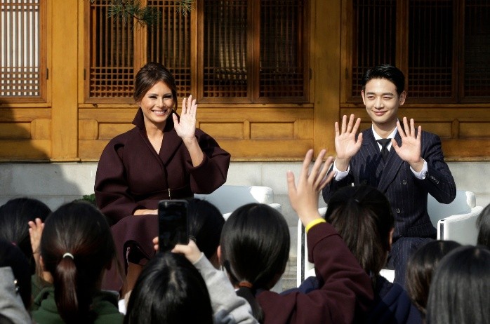 Un video de la primera dama de Estados Unidos, Melania Trump, sonriendo a jóvenes surcoreanas que estallaron en exclamaciones al ver al miembro de una banda masculina de pop coreano se hizo viral en internet el martes.En el video se ve a Trump relajada con adolescentes surcoreanas con uniforme escolar, en un acto donde la primera dama ofreció un discurso sobre la importancia de dar a las niñas un acceso igualitario a los deportes.Cuando las jóvenes vieron a Choi Min-ho, miembro de Shinee, de pie junto a Trump en una visita inesperada, empezaron a gritar y aplaudir, mientras la primera dama las miraba con una gran sonrisa. Los internautas surcoreanos elogiaron en Twitter la interacción de la primera dama con las niñas y la estrella del pop, especialmente su duradera sonrisa.“Sonríe mucho, habla bien y es muy amable con las adolescentes”, dijo un usuario.“La vi sonreír así por primera vez”, dijo otro.El acto en la residencia del embajador de Estados Unidos en Seúl, llamado “Girls Play 2!”, se celebró mientras el presidente de Estados Unidos, Donald Trump, asistía a una cumbre con el presidente de Corea del Sur, Moon Jae-in, durante su visita de dos días al país.