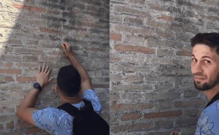 El ministro de Cultura italiano, Gennaro Sangiuliano, prometió el martes hallar y sancionar a un turista filmado cuando grababa su nombre y el de su novia en el muro del Coliseo, un delito que se castiga con multas abultadas.El mensaje "Ivan+Haley 23" apareció en el Coliseo cuando los romanos ya se quejaban de las hordas de turistas que invaden la Ciudad Eterna en esta temporada.Fue justamente otro turista, Ryan Litz, de Orange, California., quien filmó el incidente y publicó el video en YouTube y Reddit.El video se volvió viral en redes sociales y fue reproducido por la prensa italiana. Litz dijo a The Associated Press que se sentía "estupefacto" de que alguien mutilara un monumento tan importante.Sangiuliano dijo que grabar nombres en el Anfiteatro Flavio, de 2 mil años, era un hecho "grave, indigno y señal de gran falta de cultura". Expresó la esperanza de que se halle a los culpables y "se los sancione de acuerdo con nuestras leyes".La agencia noticiosa ANSA dijo que era la cuarta vez en el año que se denunciaba un acto de vandalismo en el Coliseo, y que el responsable enfrentaba una multa de 15 mil dólares y hasta cinco años de prisión. La ministra de Turismo, Daniela Santanche, dijo que el turista debería recibir una sanción "para que comprenda la gravedad del gesto". Reclamó respeto para la cultura e historia de Italia y dijo que "no podemos permitir que quienes vistan nuestra nación se sientan en libertad de actuar así".Litz, que realiza un viaje de dos meses por Europa, dijo que acababa de participar de una visita guiada al Coliseo el viernes cuando vio a una persona que "grababa descaradamente su nombre" en el muro.Dijo a la AP que tomó su teléfono para filmar al hombre.Litz, graduado de la universidad Cal Poly Pomona, dijo que denunció el hecho a un guardia, pero ni este ni su superior tomaron medida alguna, aunque Litz identificó al hombre y ofreció darles una copia del video. AH