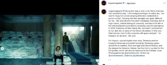 En medio de la crisis por la guerra contra Rusia, la primera dama de Ucrania, Olena Zelenska, es la imagen y portada de la revista "Vogue" en su edición impresa del próximo mes de octubre.Zelenska posó junto a su esposo, el presidente ucraniano Volodímir Zelenski, en un artículo titulado "Retrato de valentía" en el cual la pareja narra sobre su vida romántica en tiempos de guerra, su matrimonio y los sueños para el futuro de Ucrania.La revista dio un adelanto y publicó en sus redes sociales algunas imágenes de la sesión fotográfica que hizo la famosa fotógrafa Annie Leibovitz, en donde aparecen Olena y Volodímir en una ambientación de guerra simulando estar dentro de un búnker militar así como en un avión destruido junto a soldados mujeres.LEE: Darán recompensa a quienes denuncien a colaboradores rusos en UcraniaLas imágenes causaron controversia en las redes sociales, pues algunos usuarios señalan que son fuera de lugar e inoportutas pues señalan que la publicación busca romantizar la guerra y la tragedia que azota Ucrania desde el pasado 24 de febrero.En el adelanto, Zelenska narra cómo respetó la decisión de su esposo de convertirse en presidente de Ucrania. “Respeté su elección y entendí que este era un paso importante para él. Al mismo tiempo sentí que mi vida y la vida de mi familia cambiaría bastante radicalmente. El cambio sería duradero y bastante complejo”, dice.Por su parte, Zelenski confesó que su relación se encuentra más sólida que nunca. “Olena es realmente mi mejor amiga”, dice el presidente Zelenski. “Ella también es una patriota y ama profundamente a Ucrania. Es verdad. Y es una excelente madre”.jb