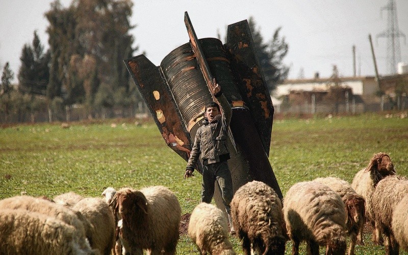 Violencia en Siria. Un niño juega al lado de un proyectil israelí que no explotó, convertido ahora en un elemento más del paisaje. AFP