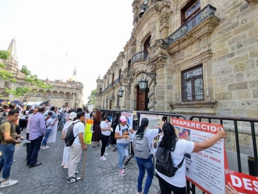 Las madres que tienen hijos desaparecidos no tienen nada que celebrar este 10 de mayo, por eso, la mañana de este martes se reunieron en la Glorieta de Los Desaparecidos (Niños Héroes), para manifestarse y exigir a las autoridades que resuelvan sus casos.Alrededor de 150 manifestantes caminaron por avenida Chapultepec, hasta llegar al Palacio de Gobierno, donde exigieron justicia por sus desaparecidos.Martha Leticia García Cruz, conocida como Marlety, del colectivo oficial entre Cielo y Tierra, describió que desde que sus hijos están desaparecidos, ya no hay días para festejar."Ni un día es bueno para nosotros, ni un día es bueno para celebrar mientras sigan ausentes (...) el 10 de mayo es una fecha que se ha sumado a las lamentables fechas desde que se los llevaron, nos lastiman el alma, el día del cumpleaños de nuestro familiar y este día se suma porque no está con nosotros, en mi caso César Ulises Quintero García es hijo único y estoy aquí porque no quiero estar en casa, ver festejos y demás", comentó.Por su parte, María Estela Melgoza Ramírez, de Arandas, busca a su hijo Vicente Rodríguez Melgoza, y a su sobrino Raúl Hernández García."Este día no es de fiesta es de lucha y de protesta, seguimos de pie en la búsqueda, hasta encontrarlos. Son muchos sentimientos encontrados, en mi caso tengo más hijos, quiero estar allá, pero también quiero estar acá", señaló.Entre los cánticos de los familiares de desaparecidos sonaba: "hijo escucha tu madre está en la lucha", cantaban, o "señor, señora, no sea indiferente, se llevan a nuestros hijos delante de la gente, únete", entre otras consignas.GC