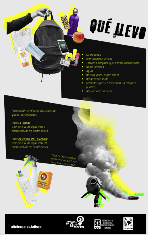 El próximo sábado 8 de marzo se conmemora el Día Internacional de la Mujer, una fecha para reflexionar sobre la lucha de las mujeres por la igualdad, el reconocimiento y el ejercicio efectivo de sus derechos.En Guadalajara, la red YoVoy8M convocó a realizar diversas actividades en relación con el 8M y a una marcha pacífica compuesta por diversas colectivas, para recorrer el próximo sábado 8 de marzo 5 kilómetros de distancia bajo el lema “Desde la Rabia, Lucha y Esperanza”.Es por ello, que dicha red compartió diversas medidas de seguridad en su micrositio, para quienes asistan a la marcha que iniciará en la Glorieta Minerva a las 17:00 horas rumbo a la Plaza Liberación. YoVoy8M recuerda la importancia de prepararse para asistir a cualquier movilización en general:“Cierra todas tus cuentas de redes sociales e información digital que contenga información sensible, como los grupos dónde te organizas o que comparten información de los lugares donde vives o contactos familiares. Mantén únicamente aquellas que puedas necesitar para emergencia o para difundir cualquier abuso.” señala.La red menciona que siempre se debe pedir permiso a la hora de tomar una fotografía, además recomienda no tomar fotos de mujeres haciendo alguna intervención si estas tienen su rostro o señas particulares descubiertas, ya que podrías vulnerar su anonimato. NA