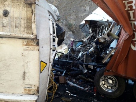 Un accidente entre dos tráileres en la autopista Guadalajara-Colima, a la altura del kilómetro 108, en el municipio de Tuxpan dejó una persona muerta la mañana de este jueves.Protección Civil de Jalisco detalló que al ir circulando los dos camiones pesados, a uno de ellos se le desprendió el segundo remolque e impactó de frente al otro vehículo, provocando la muerte el conductor tras quedar prensado.El percance también provocó daños a una camioneta pick-up, sin embargo no hubo personas lesionadas.El conductor del tráiler que perdió el segundo contenedor se dio a la fuga. Personal de la dependencia, en coordinación con Policía Federal y Protección Civil de Tuxpan se encuentra en el lugar para contener el derrame de diésel. Hasta el momento únicamente hay circulación en el carril con sentido hacia Guadalajara.GC
