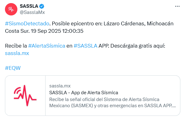 Este viernes 19 de septiembre, en punto de las 12:00 horas, tapatíos fueron sorprendidos por el sonido de la alerta sísmica durante el segundo Simulacro Nacional 2025. Este ejercicio, que se organiza cada año en México, busca reforzar la cultura de la protección civil y promover la preparación de la ciudadanía ante posibles emergencias. La finalidad es crear conciencia sobre la importancia de saber cómo actuar frente a situaciones inesperadas, no obstante, en esta ocasión destacó la novedad de escuchar por primera vez la alarma sísmica en Jalisco, un detalle que llamó la atención de los participantes.Aunque el Gobierno de México informó con anticipación que el Simulacro Nacional incluiría la activación de una alerta sísmica a nivel nacional, diseñada para llegar a más de 80 millones de celulares sin necesidad de conexión a Internet, en Jalisco muchos habitantes se llevaron un susto. Algunos desconocían la prueba y otros, aun sabiendo de ella, no la recordaban, por lo que se sorprendieron al recibir el mensaje en sus teléfonos móviles justo al inicio del ejercicio. Cabe recordar que esta herramienta ya había sido evaluada por primera vez en el simulacro realizado en abril pasado en la Ciudad de México.La coordinadora nacional de Protección Civil, Laura Velázquez Alzúa, explicó que los teléfonos móviles recibirían un mensaje acompañado de un sonido de alarma. El texto decía: "ESTO ES UN SIMULACRO, este es un mensaje para probar la funcionalidad del Sistema Nacional de Alertas del Gobierno de México, ESTO ES UN SIMULACRO". En efecto, ese fue el mensaje que se recibió en los celulares, acompañado de la aclaración de que correspondía a una alerta presidencial. Para poder ver en las pantallas la alerta no era necesario instalar aplicaciones adicionales ni contar con conexión a Internet, ya que el sistema de alertamiento en México funciona de manera gratuita y es compatible con redes móviles 2G, 3G y 4G.Durante el Simulacro Nacional de hoy, la Plataforma Digital de Alertamiento y Gestión Integral de Riesgos (SASSLA) también efectuó el disparo de la alerta sísmica a través de su aplicación móvil y la notificación a través de su cuenta de X (antes Twitter).SASSLA es una app de monitoreo de sismos en tiempo real en México; esta avisa hasta 120 segundos antes de un sismo, e indica qué tan fuerte se sentirán, así como en cuánto tiempo. También se puede descargar gratis para Android y iOS.La página de la app dice que retransmite la señal oficial del Sistema de Alerta Sísmica Mexicano (SASMEX).El detalle fue que el mensaje de esta ocasión no especificaba que se trataba de una alerta por simulacro, lo que confundió a algunos usuarios.También la aplicación Sky Alert avisó con un mensaje, sin embargo, contrario a lo que hizo SASSLA, ésta sí avisó que se trataba de un simulacro.*Mantente al día con las noticias, únete a nuestro canal de WhatsAppOF