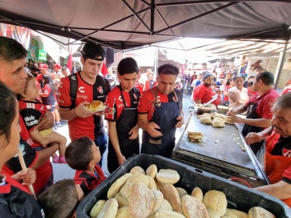 Fiel a su estilo, Salvador "Chava" Sáenz Guzmán, propietario de las “Súper Tortas Lokas”, en el Mercado Libertad o San Juan de Dios, regaló 400 tortas tradicionales de pierna y lomo.La fila se formó en todo el patio central del mercado, donde familias y aficionados del Atlas portaban su camisa rojinegra, la única petición del local.“Ya se fue una primera etapa de 200 y vienen en camino otras 200, para que sean 400. No cualquiera tiene a su equipo con dos campeonatos en cinco meses, ni el Real Madrid, ni la orejona, es doble satisfacción y quiero compartir con la gente”, señaló Sáenz.Justo hace dos meses, las “Súper Tortas Lokas” fue uno de los locales afectados tras el incendio que se registró en el Mercado San Juan de Dios debido a un corto circuito. En aquel entonces, aficionados del Atlas crearon una iniciativa para apoyar a "Don Chava" con insumos y dinero.“Nos levantamos del incendio y aquí estamos, también la gente y la Fiel nos apoyó. Nos confirma la fidelidad que tenemos los rojinegros”.Iván Delgado García fue con sus tres hijos y su esposa por sus tortas; esperaron alrededor de una hora.“Estamos emocionados porque Chava nos prometió torta gratis y está cumpliendo. Gran corazón tiene, siempre apoyando, hay que ser recíprocos. Y la verdad estoy muy alegre por mi equipo, desde el 99 era la burla de muchos y decían que mi equipo no era competente, aquí estamos festejando, es lunes seguimos la fiesta, ahora ya somos bicampeones, tenemos ya tres títulos, el Atlas cayó bocas”, acotó.GC
