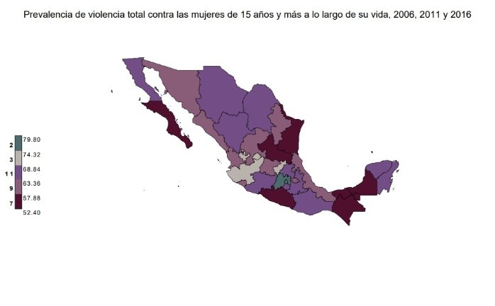 En los últimos cinco años, la violencia de género ha pasado de 67.42% a 74.32% en el estado de Jalisco, cifra con la cual se colocó entre las cinco entidades con más violencia contra las mujeres, según las cifras reveladas este día por el Instituto Nacional de Estadística y Geografía (Inegi).De acuerdo a los datos del organismo, la Ciudad de México y el Estado de México son los estados con un mayor registro de violencia de género, con un porcentaje de 79.80% de víctimas. Le siguen Jalisco, Aguascalientes y Querétaro. Con motivo del Día Internacional de la Eliminación de la Violencia contra la Mujer, que se conmemora este sábado 25 de noviembre, el Inegi publicó cifras en las que se muestra que 30.7 millones de mujeres de 15 años y más han enfrentado violencia de algún tipo en el país. Esta cifra representa el 66.1% de la población femenina del país. En otras palabras se puede decir que 66 de cada 100 mujeres que habitan el país han sido víctimas de la violencia. Por rubros, Jalisco se encuentra entre las seis entidades con mayor registro de mujeres víctimas en violencia de pareja: 27.3% de ellas ha sido víctima de algún tipo de agresión por parte de su esposo o novio, lo que representó un aumento desde el 2011. Mientras que en violencia dentro del ámbito familiar Jalisco ocupa el primer lugar con 12.8%, pese a que desde el 2011 se ha registrado un decenso de 10 por ciento. Respecto a feminicidios en el país, Jalisco es el tercer lugar con 834 homicidios de mujeres cometidos en el 2015. El Estado de México y la Ciudad de México están en primer y segundo lugar, con mil 612 y 935 víctimas registradas. Según las estadísticas del instituto, 36 de cada 100 mujeres fueron estranguladas, ahorcadas, quemadas o golpeadas con algún objeto o herida con arma punzocortante.