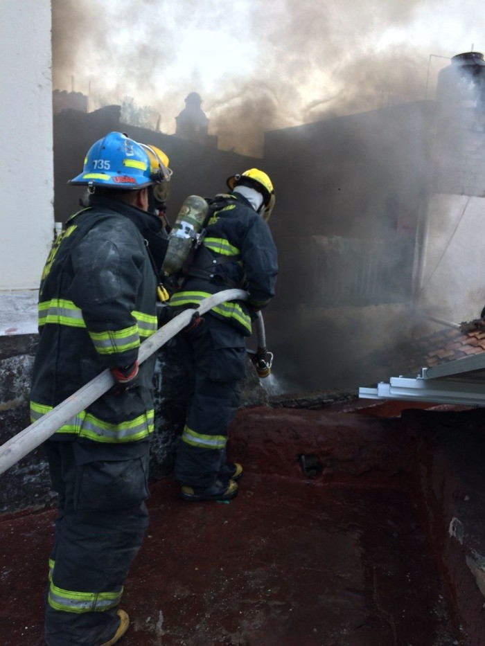 Elementos de Bomberos de Guadalajara sofocaron el incendio que se registró en una casa habitación en la colonia Atlas en donde se cocinaban carnitas para tortas ahogadas.Al arribo de los elementos, se percataron que el siniestro había sido ocasionado por una presunta fuga de gas dos tanques, que se propagó rápidamente en el patio de la vivienda.Bomberos detallan que al interior de la vivienda se encontraban nueve personas: cuatro menores y cinco mayores de edad de los cuales, una mujer de 34 años presentó quemaduras de 2do grado en las piernas y un hombre de 45 años, resultó con quemaduras en el 50 por ciento de su cuerpo, sobre todo en cara y manos, por lo que fueron trasladados de urgencia a un puesto de socorros.Según un reporte preliminar, la vivienda no presentó daños de consideración.