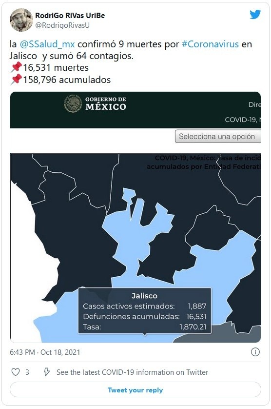 La Secretaría de Salud Jalisco (SSJ) informó que tras siete semanas del retorno a clases presenciales el reporte de incidencias de contagio de COVID-19 en escuelas mantiene una tendencia estable.Sobre la incidencia de casos activos de la enfermedad detectados en planteles de educación básica, notifican que hay 38; mientras en el personal educativo se registraron 56. Los casos fueron identificados en 83 escuelas.Según el seguimiento epidemiológico realizado por la SSJ en coordinación con la Secretaría de Educación Jalisco, se detalla que en las edades de estudiantes de 3 a 14 años suman 189 casos que iniciaron síntomas en los últimos 15 días, de los cuales sólo 38 se identificaron en escuelas. La mayor parte de los casos positivos en este rango de edad se presentaron en el Área Metropolitana de Guadalajara (AMG) con 134.La semana pasada se registró un ligero incremento en la asistencia de estudiantes, acudió el 86.10 por ciento de alumnas y alumnos de preescolar, primaria y secundaria, es decir, un millón 429 mil 659 estudiantes en el modelo educativo presencial. Hay 99.01 por ciento de escuelas abiertas para recibir a los estudiantes en sus clases; pero sigue vigente un modelo híbrido.En educación media superior y superior suman 456 casos que iniciaron síntomas en los últimos 15 días, la mayor parte se presentaron en el AMG con 316. Sobre la incidencia de casos activos en planteles de educación media superior, se reportan tan sólo 112 casos activos en estudiantes; y 35 en el personal educativo.La Secretaría de Salud Federal confirmó 9 muertes más en Jalisco a causa del nuevo coronavirus, con estas van 16 mil 531 personas fallecidas por esta enfermedad desde marzo del año pasado.En cuanto a casos activos, que representan a las personas que han presentado síntomas en los últimos 14 días, se reportan 994 contagios; la cifra más baja desde principios de julio pasado.Sobre hospitalización, la base de datos de la SSJ refiere 478 pacientes atendidos en hospitales públicos y 6 en instituciones privadas.La vacunación de jóvenes contra COVID-19 avanza, según el reporte de la Secretaría de Salud del Estado. En el grupo de 18 a 29 años alcanzó la semana pasada un 66 por ciento de cobertura con al menos una dosis.Al corte de la semana epidemiológica 41, en Jalisco 73 por ciento del grupo de población de 30 a 39 años ya cuenta con al menos una dosis de la vacuna, entre los mayores de 60 años la cobertura es de 69 por ciento; y en el grupo de población entre 40 y 49 años hay avances de 62 por ciento. El mayor rezago está en las personas de 50 58 años, 61 por ciento han recibido al menos una dosis.Esta semana están activas jornadas para aplicar la primera dosis de la vacuna a todos los rezagados del AMG, y segundas dosis al grupo de 30 a 39 años. Los detalles de los municipios convocados a estas nuevas jornadas se podrán consultar en https://coronavirus.jalisco.gob.mx/ruta-de-la-vacunacion/).JM