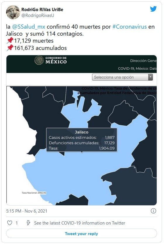 La demanda de atención en hospitales de pacientes con complicaciones por COVID-19 mantiene la tendencia a la baja y la ocupación hospitalaria se reporta en bajos niveles. De acuerdo con la base de datos de la Secretaría de Salud Jalisco, este fin de semana hay 275 personas internadas, hace una semana había 357.Los niveles de hospitalizaciones están muy por debajo de lo registrado durante el pico de la tercera ola de contagios del virus, el pasado 22 de agosto había mil 426 pacientes en nosocomios públicos y privados.La Secretaría de Salud federal confirmó este sábado 40 muertes más en Jalisco a causa del virus, el acumulado llegó a 17 mil 129 víctimas mortales del SARS Cov 2 en la entidad. En cuanto a casos activos, que corresponden a las personas que han presentado síntomas del virus en los últimos 14 días; asimismo, se notificaron 807 contagios, cien menos que hace una semana.Respecto a la cobertura de vacunación para prevenir cuadros graves de la enfermedad, la plataforma federal reporta que Jalisco tiene 76% de la población mayor de 18 años con al menos una dosis del biológico; el promedio nacional es de 83% de avance. Los estados de Chiapas, Oaxaca y Guerrero son los más rezagados en la inmunización.JM