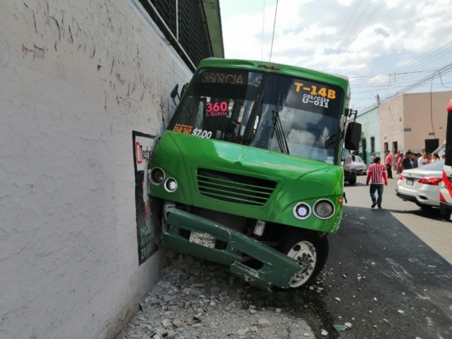 Un camión de la ruta 360 impactó esta tarde contra el muro de un gimnasio en Guadalajara, propiedad de la Secretaría de Educación Jalisco (SEJ), dejando como saldo un total de 28 personas lesionadas.Los hechos ocurrieron en el cruce de las calles Coronel Calderón y la calle Angulo, en la colonia Centro Barranquitas, donde el conductor perdió el control de la unidad e impactó contra un vehículo Nissan Sentra azul, y posteriormente se impactó contra el edificio, de acuerdo con el primer oficial de la unidad de Protección Civil y Bomberos Guadalajara, Jesús Hernández López.Por el percance el conductor del auto particular resultó lesionado, al igual que otras 27 personas que iban a bordo de la unidad del transporte público. De estas últimas, solo cinco (dos hombres y tres mujeres) requirieron traslado a un puesto de socorros debido a que sus lesiones fueron reportadas de leves a regulares.La llanta delantera derecha del camión quedó dentro de las instalaciones del Gimnasio Deportivo Estatal “Modesto Careaga”, a cargo de la Dirección de Educación Física del Estado, que a su vez depende de la SEJ.La afectación de la pared de este gimnasio abarcó una extensión de aproximadamente dos metros de alto por cinco de largo, de acuerdo con el oficial de la unidad de protección civil tapatía. No hubo personas que resultaran lesionadas dentro del mismo.Hasta el momento la SEJ no ha informado sobre cuál es el monto al que ascienden los daños, sin embargo, personal de la Dirección de Obras Públicas del Ayuntamiento de Guadalajara para apoyar en la evaluación de los daños estructurales.LS