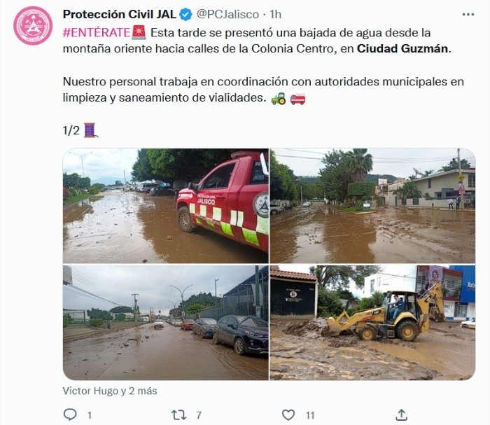 Una olla de captación de agua para cultivos de aguacate se reventó en una montaña del oriente de Ciudad Guzmán, en el municipio de Zapotlán el Grande, lo que provocó serias inundaciones con lodo y el arrastre de palos en el municipio del sur de Jalisco.Debido a la ruptura de la olla de 50 por 50 metros de diámetro y una profundidad de cuatro metros, alrededor de un millón de metros cúbicos de agua desbordaron el arroyo San Cayetano y culminaron en la zona urbana de Ciudad Guzmán.Alrededor de las 14:00 horas, vecinos de las zonas Norte y Oriente comenzaron a presenciar grandes cantidades de agua, lodo y palos bajando por las calles, cubriendo el paso vehícular.Se reportó la presencia de agua y lodo al interior de viviendas particulares y negocios, así como del Centro Universitario del Sur y la subdelegación del Instituto Mexicano del Seguro Social.JM