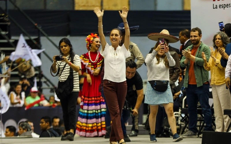De convertirse en la primera Presidente de México, Claudia Sheinbaum se comprometió “a todo” con Jalisco: combatir la violencia, apoyar a la Fiscalía del Estado, más inversiones, reforzar los programas sociales y hasta la Línea 5 del Tren Ligero “puede ser”. “Hay que hablar en su momento con quien quede de gobernador o gobernadora… ponernos de acuerdo”.En entrevista con EL INFORMADOR, consideró que “hay probabilidad” de que una mujer encabece los destinos de Jalisco, pero dejó claro que dependerá de los resultados de la encuesta, porque “mal haría yo en decidir cupularmente quién va a ser la candidata o el candidato”. La decisión final, reiteró, será lo que diga la gente a través del método de selección.Descartó que su relación con la Universidad de Guadalajara sea de confrontación y denostación, como la que el Gobierno federal tuvo hasta hace algunos meses con la casa de estudio. Evitó pronunciarse sobre una eventual invitación al rector de la UdeG, Ricardo Villanueva, para convertirse en aspirante al Gobierno del Estado o la presidencia municipal de Guadalajara, aunque también dijo que depende del partido.Luego de firmar el Acuerdo de Unidad para la Transformación en Jalisco, la aspirante a la presidencia de la República por Morena, Claudia Sheinbaum Pardo, afirmó que en México “no hay marcha atrás; el camino está trazado”, y por primera vez definió como “humanista” al movimiento de la transformación que encabeza.Ante más de 13 mil personas que se dieron cita en la Arena VFG, la Coordinadora Nacional de los Comités de Defensa de la Transformación, aseguró que México es el único país con pensamiento humanista.“¿Y cómo nos definimos nosotros? Como humanistas, porque siempre vemos por él que se quedó atrás. Dice el Papa Francisco una frase que a mí me gusta mucho repetir: la única forma lúcida de que una persona vea de arriba a abajo a otra es cuando le da mano para levantarse. Eso es lo que es nuestro movimiento. Eso es el humanismo mexicano. No dejamos que nadie se quede atrás”, consideró.Al reiterar que es tiempo de transformación y de mujeres, Sheinbaum Pardo, exhortó a los morenistas a seguir formando comités de defensa y pronosticó: si hay unidad, movilización y se hace conciencia entre la población, en Jalisco va a ganar la Cuarta Transformación. “Vamos por la Presidencia, vamos por Jalisco y vamos por todos los diputados federales, locales y las presidencias municipales”, expresó al cuestionar, “¿se puede o no se puede? Sí se puede, exclamó al tiempo que todos gritaron junto con ella.Prometió que no descansará hasta que todos los mexicanos coman tres veces al día alimentos saludables y que el total de jóvenes accedan a la Universidad.En la Arena VFG hubo música de banda, regional y el mariachi. Seguidores colocaron mantas de apoyo, aunque también realizaron peticiones. “La necesitamos para sanear el río Lerma Santiago. Ayúdenos”, se leía en una de las lonas. Eran morenistas de Juanacatlán.Para garantizar el derecho universal a la educación, a la salud, a vivir una vida libre de violencia, así como impulsar un Sistema Nacional de Prevención de la Violencia de Género y el crecimiento del Sistema Nacional de Cuidados, el movimiento nacional de mujeres “Por Ella por Todas” presentó la “Agenda de las Mujeres para el México que queremos con Claudia Sheinbaum”, la cual significa la “Carta de Navegación” feminista que formará parte de la plan de gobierno de la primera mujer presidenta del país, expusieron.La exdiputada federal por la CDMX y Cofundadora Nacional de “Por Ella por Todas”, Lorena Villavicencio Ayala, expresó que la agenda es un catálogo de exigencias para mejorar las expectativas de sus propias vidas, y resume el sentimiento de las mujeres de todo el país, como resultado de cinco meses de consensos.“Hemos escuchado a las mujeres buscadoras, a las mujeres feministas, a las empresarias, a la academia, a las sindicalistas, a las indígenas y a las productoras. Nuestra Carta de Navegación, necesita involucrar a todas las mujeres, para que con sus ideas aporten en la construcción de un mejor país, de un mejor México”, destacó Villavicencio Ayala.En su intervención, la diputada por el Estado de Oaxaca y cofundadora del movimiento nacional “Por ella, Por Todas”, Mariana Benítez Tiburcio señaló que la Agenda feminista se nutre con la participación de mujeres empresarias, indígenas, académicas, servidoras públicas en un contexto de total respeto a la pluralidad que las caracteriza.“Su voz, nuestra voz, la de todas, está representada en la Agenda, la cual reconoce nuestra lucha histórica por garantizar el ejercicio pleno de derechos de las mujeres, sin cortapisas ni simulaciones”, acotó.La Agenda propone impulsar un Sistema Nacional de Prevención de la Violencia de Género, debido a que la violencia contra las mujeres es el principal flagelo que sufren las mexicanas y, por tanto, consideran que deberá ser prioridad en el gobierno que encabezará Claudia Sheinbaum.Otra de las cruzadas que proponen es abatir la impunidad en los casos de violencia contra las mexicanas. “Queremos un nuevo modelo de justicia cotidiana y penal, donde la premisa sea contar con un presupuesto suficiente para ser eficaz. Nunca más violentadores sin castigo”, concluyó.… Y Sheinbaum recibe apoyoClaudia Sheinbaum, candidata de Morena para buscar la presidencia de México en las elecciones de 2024 ahora recibió el apoyo de más exdeportistas de alto rendimiento.Si bien el primero que se hizo viral en redes fue el exclavadista Rommel Pacheco, ahora, se suman al apoyo a Sheinbaum el exbasquetbolista Gustavo Ayón y el exfutbolista Ramón Ramírez.Esto durante la visita que hizo la candidata a Tepic, Nayarit, estado natal de los exdeportistas.
