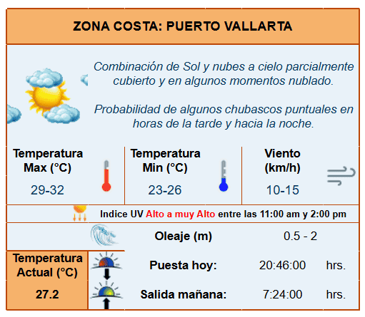 El Servicio Meteorológico Nacional (SMN) informó que las bandas nubosas del huracán “Flossie” —el cual ya es categoría 3— al combinarse con la humedad entrante y canales de baja presión al interior del país, mantendrán temporal lluvioso en el occidente, oriente, noreste y sur de México. Según la cadena de Meteored, hoy Puerto Vallarta se lucirá con cielos plenamente nublados, junto a temperaturas que oscilarán de los 29 a los 24 grados centígrados, y fuertes ráfagas de viento sureste de hasta 22 km/h.Este miércoles, la costa vallartense tendrá lluvia débil —con gotas de 0.9 mm—, la cual cubrirá hasta el 80% de la región. De manera general; hoy hay poca lluvia y muchas nubes. Las horas más propensas para la caída de lluvia son: Las condiciones anteriores están siendo causadas por el huracán “Flossie” mientras este se debilita gradualmente al oeste de las costas jaliscienses, además, el SMN también advierte de una aproximación de la onda tropical número 8 a la península de Yucatán.Con información del SMN, IAM y Meteored*Mantente al día con las noticias, únete a nuestro canal de WhatsApp.AO