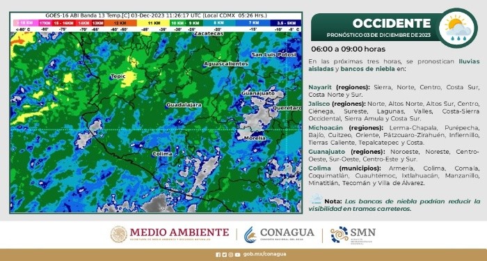 Este domingo hay una importante entrada de humedad del pacífico mexicano, debido a una corriente en chorro subtropical, que son vientos intensos que están arrastrando humedad. Además en 7 u 8 kilómetros se está favoreciendo mucha inestabilidad y por lo tanto el crecimiento de nubes en el centro y el occidente de la República Mexicana, en compañía de un frente frío que se está desplazando por el Golfo de México. Estas condiciones provocarán inestabilidad y por lo tanto las precipitaciones estarán presentes de manera ligera y dispersa en buena parte del centro-occidente y también hacia el noreste de la República Mexicana.De acuerdo con el Instituto de Astronomía y Meteorología, en el caso del Área Metropolitana de Guadalajara, se esperan algunos chubascos o tormentas eléctricas, pero principalmente lluvia de manera dispersa y persistente en algunos momentos para este domingo.*Mantente al día con las noticias, únete a nuestro canal de WhatsApp aquí: https://whatsapp.com/channel/0029VaAf9Pu9hXF1EJ561i03MV