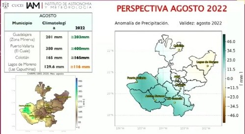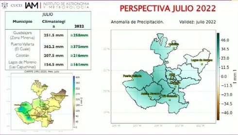 Un ligero incremento de la media histórica respecto a las lluvias en Jalisco, es lo que se espera para el próximo trimestre, informó este martes la meteoróloga del Instituto de Astronomía y Meteorología (IAM) de la Universidad de Guadalajara, Martha Diana Alcocer.Se prevé, estadísticamente, que la temporada de lluvias este 2022 inicie entre el 13 y el 17 de junio, y que si bien de enero a marzo se tuvieron lluvias por debajo del promedio histórico, se tiene contemplado que a partir de junio y hasta el mes de agosto los niveles sean ligeramente superiores.Por ejemplo, dijo, en Guadalajara se tiene previsto que en junio se tenga un incremento de entre 15 a 20 milímetros de lluvia respecto del promedio histórico, llegando a hasta 177mm, mientras que en julio se llegará a 258 mm, siendo este mes en el que más precipitaciones se prevén. Para agosto se estima que se tendrá un promedio de 203 mm de lluvia acumulada, al menos 2mm más que el promedio histórico.Donde podrían registrarse un aumento en las lluvias en este trimestre, sería en la zona de Puerto Vallarta, y donde habría menos lluvia sería en la zona de Lagos de Moreno.Todo lo mencionado, puntualizó la experta, sin considerar “fenómenos meteorológicos extremos”, como un ciclón, un huracán, lo cual cambiaría las perspectivas. “Es muy importante que estén al pendiente del pronóstico diario, ya que la ocurrencia de algún evento hidrometeorológico extremo se podría mencionar en el pronóstico diario, y puede ayudar para tomar las precauciones necesarias”, añadió.Los meses siguientes, señaló, están aún en incertidumbre debido a las variaciones que puede traer consigo el fenómeno de La Niña, en el cual nos encontramos actualmente.El director del IAM, Héctor Hugo Ulloa, recordó que estos datos solo detallan una previsión de pronóstico, a fin de que las autoridades y la ciudadanía establezcan las acciones debidas a manera de prevención, es decir, los datos presentados pueden presentar modificaciones según el avance del temporal. El investigador del IAM, Omar Faustino García, añadió por su parte que no es posible predecir la aparición o trayectoria más allá de cinco días de fenómenos meteorológicos como huracanes o ciclones. Por su parte, la Unidad Estatal de Protección Civil y Bomberos Jalisco (UEPCBJ), explicó que si bien existe la posibilidad de que en esta temporada puedan formarse entre 14 y 19 Ciclones Tropicales en el Océano Pacífico, se desconoce cuántos de ellos son los que pudieran llegar afectar a nuestro Estado, según estudios entregados por especialistas de la Comisión Nacional del Agua. "A pesar de que algunos modelos numéricos pueden alcanzar a dar indicios de formación de un ciclón con más de 10 días de anticipación, no se pude alarmar a la población con un período superior a los cinco días, debido al alto grado de incertidumbre que se presenta en estas modelaciones", detalló la UEPCBJ a través de un comunicado. GC