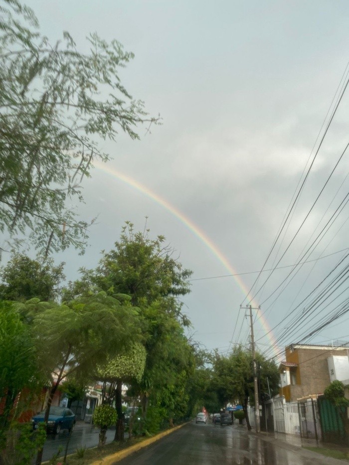 Una fuerte lluvia desordenó el amanecer del sur Guadalajara este viernes 21 de julio, con el saldo de varias avenidas inundadas, calles intransitables, tráfico pesado, y carros varados.No obstante, en medio del caos, una imagen resplandeció en el horizonte nublado: un arcoíris. Ocurrió después de la lluvia, y pudo verse en varias partes en el sur de la ciudad.Diversos usuarios en redes sociales compartieron las imágenes que tomaron del fenómeno meteorológico, aquella paleta multicolor haciendo contraste con el firmamento obscurecido, mientras el sur de Guadalajara no se daba abasto con el estrépito dejado tras la lluvia. El arcoíris aparece en el cielo debido a la reflexión de la luz del sol sobre las gotas de agua suspendidas y originadas por la lluvia. El fenómeno "descompone", separa la luz en sus propiedades verdaderas, que son los diversos colores que vemos plasmados en el cielo. En realidad el arcoíris tiene forma circular, situación que no puede apreciarse a menos que este sea observado desde una zona muy elevada.En conclusión, cuando el sol atraviesa las gotas de lluvia, estas funcionan como pequeños primas que separan la luz, y la dividen en todos sus colores. Es necesario que llueva, que haya luz, y que esta misma luz atraviese la lluvia en un ángulo específico. A través de redes, tapatíos también informaron sobre el estado de las calles, con inundaciones y caos vial en las siguientes zonas:Las lluvias durante la madrugada han sido la constante en estos días. Se espera un viernes de sol, siendo la mayor hora de lluvia alrededor de las 9 de la noche, con tan sólo un 24% de probabilidad de que ocurra. FS