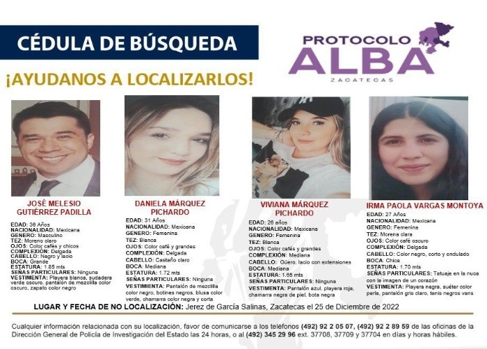El cortejo fúnebre con los cuerpos de Daniela Márquez, Viviana Márquez y Paola Vargas salió esta noche de Tepetongo, Zacatecas, hacia Colotlán, Jalisco.La jóvenes fueron identificadas a través de una prueba de ADN, luego de ser localizadas el pasado martes en una fosa clandestina en el Rancho Monte de la Presa Vieja, comunidad de El Cuidado en el municipio de Tepetongo.Un día antes se encontró la camioneta MG en la que desaparecieron el 25 de diciembre de 2022 Daniela y Viviana Márquez, Paola Vargas, y José Melesio Gutiérrez. Del hombre aún se siguen haciendo las confrontas genéticas.Pobladores de Tepetongo caminaron por las calles en conjunto con las carrozas fúnebres y vehículos con familiares de las tres jóvenes para despedirlas y acompañarlas en su trayecto hacia la carretera Federal 23 con destino en Colotlán; los zacatecanos pedían también justicia con grito al unísono. Daniel Márquez, papá de Daniela y Viviana, dijo ante una televisora local que ya no es una incertidumbre no saber de sus hijas y mostró empatía con familiares de más personas desaparecidas.“Ya vamos en camino a Colotlán para despedirlas, gracias a Dios, y darles santa sepultura, estaremos velando hoy, mañana todo el día y el domingo a la 1:30 de la tarde será su misa para darles cristiana sepultura. Le damos gracias a Dios que nos las regresó, las tenemos con nosotros y vamos a homenajearlas, en apoyo con todas las personas que han perdido un familiar y no han podido localizar, es triste, y es una agonía no saber dónde están”.El señor Márquez agradeció la solidaridad de los pobladores de Tepetongo, Zacatecas, y dijo que ante su desgracia sabe que hay gente buena.“Quiero agradecer a todo el pueblo de Tepetongo por haber dado este apoyo de fraternidad, adelante todos adelante, porque somos un pueblo pacífico y no somos un pueblo de guerra, somos pacíficos”, acotó. Daniel Márquez, padre de Daniela y Viviana, se refirió a los jóvenes como "muy trabajadores y dedicados”. Daniela era diseñadora de interiores y Viviana maquillista, contó.Paola, su sobrina, era diseñadora de modas y José, novio de Daniela, es arquitecto, ciudadano estadounidense. De él no se ha confirmado la identificación genética con el cuarto cuerpo hallado en una fosa en Zacatecas.El pasado 25 de diciembre Daniela y Viviana Márquez, Paola Vargas, y José Melesio Gutiérrez regresaban a Colotlán en una camioneta MG, luego de pasar la Noche Buena en Jerez, Zacatecas, pero cuando transitaban por la carretera federal 23 a la altura de los poblados Tepetongo y Víboras ya no se supo de ellos.El 18 de enero fueron encontrados cuatro cuerpos en una fosa en Zacatecas y se confirmó que trespertenecen a las mujeres desaparecidas. Aún se revisan los resultados ADN del cuarto cuerpo.
