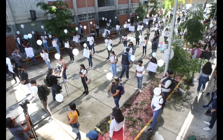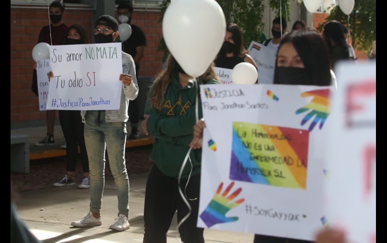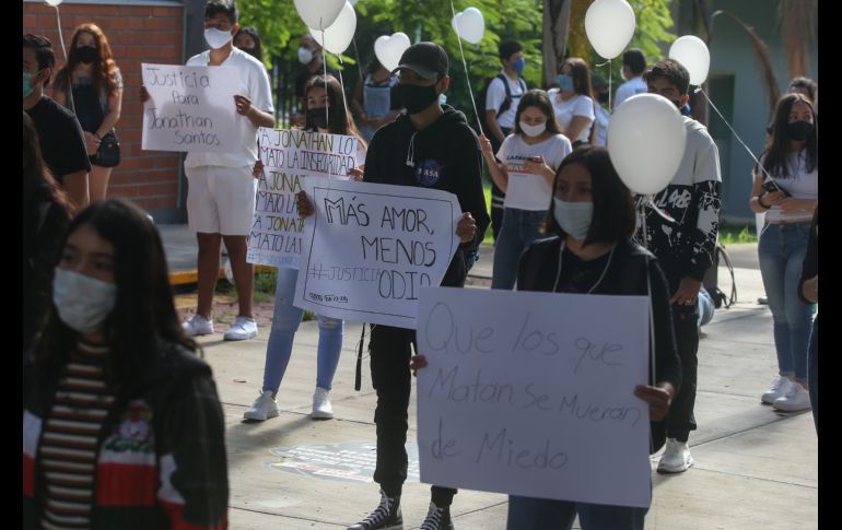 Compañeros y amigos de Jonathan Santos se reunieron esta mañana en el Politécnico Ingeniero Matute Remus de la Universidad de Guadalajara (UdeG) dónde él estudiaba, para despedir al joven en un pequeño homenaje, realizado tras su asesinato.Fue en el patio principal de esta escuela donde los estudiantes, con globos blancos y carteles de despedida, se unieron para pedir justicia de manera pacífica por su homicidio, cometido la mañana del martes, en la colonia Balcones de la Cantera, en Zapopan."Una flor, es así como defino a Jonathan joven bello con actitud firme y siempre positivo. Pero en pleno siglo XXI parece que ser firme y demostrarte al mundo como eres pone en riesgo tu vida. Nos están matando, basta de homofobia y violencia para todos aquellos que deciden florecer con libertad", expresó Anahí, prima de Jonathan.Ella lo definió como un joven alegre, sociable, que le gustaba vivir feliz y libre. A nombre de la familia, quien no pudo acudir por cuestiones relacionadas con el seguimiento del caso, exigió que se haga justicia y que se localice y castigue a la o las personas responsables de su asesinato. Anahí dijo que la familia no había sido informada sobre agresiones previas contra Jonathan, pues “donde quiera que él llegaba él era aceptado tal como era”, pero aún así sostienen que su homicidio sí podría relacionarse con temas de homofobia.Por su parte, el director del centro universitario, Luis Alberto Robles, lamentó lo sucedido debido a que, dijo, Jonathan era un estudiante muy respetado y apoyado por sus compañeros y reiteró que nunca había sido señalado o recriminado por sus preferencias sexuales.“Es un asunto muy preocupante, nos tiene realmente molestos y preocupados porque finalmente la educación es una salida para formar a los jóvenes y justamente es a quien están asesinando. Es una situación muy injusta y sobretodo no solo es la molestia de los homicidios sino las razones, es decir, que la razón por asesinar a un joven sea por expresar sus preferencias o sus deseos, esa es una situación que debe dar rabia”, añadió el director.El presidente de la Federación de Estudiantes Universitarios (FEU), Javier Armenta, recordó que son ya 22 estudiantes de la Universidad de Guadalara que han sido víctimas de la inseguridad y de las fallas de las autoridades en los últimos seis años, desde que María Fernanda “Botas” perdió la vida a causa de las anomalías del Transporte Público.“Si nos tocan a unos nos tocan a todos y no vamos a cesar de decir afuera de Casa Jalisco y al Gobierno que haga su trabajo porque esto no debe de quedar impune y porque las personas que privaron de la vida a Jonathan tienen que llegar a la cárcel. No vamos a quitar el dedo del renglón, no solo por Jonathan, sino por toda la comunidad universitaria”, expresó Armenta.Por último, el líder estudiantil adelantó que el día de mañana viernes se realizará una manifestación para continuar exigiendo justicia por el homicidio del joven de 18 años, a la cual están convocados no solo los estudiantes de la UdeG, sino también distintos colectivos de la comunidad LGTBTTTI.Luego del evento los asistentes salieron a la calle y tomando su “sana distancia” nombraron al joven como solían hacerlo en sus clases, para finalizar soltando los globos al aire en señal de libertad y despedida a Jonathan Santos.NR