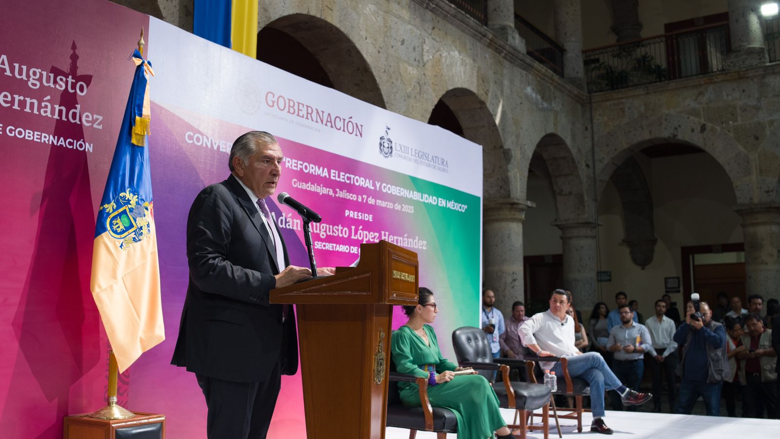 El Plan B de la reforma electoral no desmantela al sistema electoral ni implica el despido masivo de personal, sostuvo el secretario de gobernación Adán Augusto López Hernández, que visitó el Congreso de Jalisco para encabezar un conversatorio sobre el tema.El titular de la Secretaría de Gobernación argumentó que con las modificaciones suprimen mil 264 plazas en el Instituto Nacional Electoral (INE), que dijo tiene 17 mil 500 empleados con una burocracia dorada.El funcionario federal recomendó tomar un curso de matemáticas al presidente del INE, Lorenzo Córdova y al consejero Ciro Murayama que habían denunciado más de ocho mil despidos. Insistió en que la reforma está bien diseñada para que los mexicanos gasten menos en los procesos electorales.“Efectivamente hay algunos trabajadores que van a quedarse sin empleo, son 32 juntas locales y de cada una de ellas se va a despedir o reubicar a dos vocales, que era gente que no tenía mayor ocupación; son 64. De las juntas auxiliares son 300 por cuatro, son mil 200. Ahora que ya no van a tener que hacer, el señor Córdova y el señor Murayama, a la mejor les conviene tomar un curso de matemáticas para que se entretengan. El resto del personal que labora en el Instituto Nacional Electoral es intocable”, dijo.Al arribo al Congreso estatal, Adán Augusto López negó que odie al INE y reiteró que no habrá tantos despidos como denunciaron los opositores.En otros temas, el secretario evadió hablar del caso de los ciudadanos estadounidenses secuestrados en Tamaulipas, dijo que la Secretaría de Seguridad y Protección Ciudadana dará los detalles sobre el asunto. Negó que el hecho afecte las relaciones de México y Estados Unidos. “Desde luego que no (fractura la relación) es un hecho lamentable pero no tiene porqué fracturar la relación de amistad, comerciales, económica; con los Estados unidos”, dijo.Antes de su visita al Congreso estatal, el secretario de gobernación se reunió con el gobernador de Jalisco, dijo que abordaron temas como la seguridad. Evadió hablar del tema electoral, de las bardas de apoyo a sus aspiraciones o de los aspirantes morenistas a la gubernatura.En el conversatorio sobre la Reforma Electoral, el Coordinador del grupo parlamentario de Morena, José María “Chema” Martínez resaltó que la reforma electoral cala a quienes han tenido sueldos gordos en el INE, pues se terminará con un monopolio y el privilegio que han imperado en el órgano electoral.“Cala hondo, sobre todo a quienes se hacen llamar falsamente demócratas con una ética y una moral muy delgada, pero con salarios y sueldos muy gordos. También cala por supuesto a quienes tenían antes de la reforma el monopolio y el privilegio, y va a calar más cuando (se) ponga en relieve lo verdaderamente importante, ʻmás pueblo, menos burocraciaʼ”, señaló.“Creo que tenemos un falso debate, que se amplifica cuando existen unos cuantos que prefieren provocar miedo que sentarse a discutir y contrastar ideas”, puntualizó.José María Martínez mencionó que se está frente a una nueva etapa de la vida pública, donde la honestidad y la eficiencia deben ser el centro de todas las consideraciones. MF