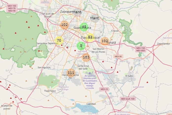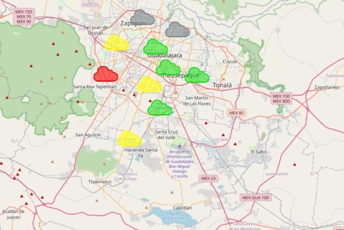 A las seis de la mañana de este martes la Secretaría de Medio Ambiente y Desarrollo Territorial (Semadet) valoró como "Muy mala" la situación registrada por su índice de Aire y Salud, en el que destaca la zona de Las Águilas.De igual manera, situó el índice de Calidad del Aire del Área Metropolitana de Guadalajara como "Mala", con un registro de 111 puntos IMECA en la estación Santa Fe.Anoche la dependencia lanzó una alerta atmosférica para los municipios de Guadalajara, Zapopan y Tala debido a tres incendios forestales: en el predio La Tecomata-Villa Felicidad del bosque La Primavera, en carretera a Saltillo y en el paraje Cabañas de la Barranca, en Zapopan.Por la madrugada, ciudadanos manifestaron las molestias y preocupaciones que los siniestos les causaban.Ante la situación, la Semadet sugiere no realizar actividades al aire libre y acudir al médico si se presentan síntomas respiratorios o cardiacos.