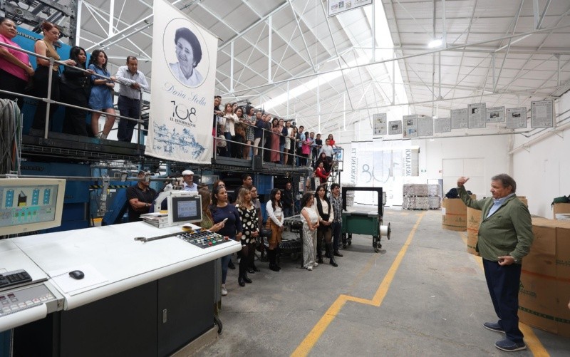 Ayer, el personal de las distintas áreas de EL INFORMADOR fue a conocer las nuevas instalaciones del medio, en donde se encuentra la prensa “Doña Stella”. Desde Ávila Camacho 2255, las áreas de editorial, digital, recursos humanos, administración, comercial y dirección partieron para dar la bienvenida a la nueva prensa de EL INFORMADOR, ubicada en la quinta sede del diario, en Nicolás Régules y Carteros, Colonia Moderna. La ocasión coincidió con la celebración del 108 aniversario del periódico y se cerró con música, comida y la compañía de colegas en la tradicional cantina La Fuente.Al llegar a la sede de la rotativa, los trabajadores fueron recibidos por la imponente estructura de la prensa, que se erigía orgullosa sobre la gran explanada del inmueble. “Doña Stella” impresionó no solo por su tamaño, sino por su capacidad de imprimir hasta 22 mil ejemplares por hora. En el techo, colgaban portadas históricas de EL INFORMADOR: la llegada del hombre a la Luna, las elecciones presidenciales de 2006, la medalla de oro en los Juegos Olímpicos de Londres 2012, entre otros momentos. A los lados, los gigantes rollos de papel se disponían de manera uniforme, sirviendo como mesas y bancas improvisadas.Subir a la prensa requirió habilidad y cuidado. Una vez en la cima, los fotógrafos buscaban el mejor ángulo para la foto oficial: algunos usaron drones, otros se colocaron sobre un rollo de papel o recurrían a lentes gran angulares. Allí posaban los empleados que por primera vez conocían la nueva rotativa, mientras que el director general de EL INFORMADOR, Carlos Álvarez del Castillo Gregory, ofreció unas palabras de agradecimiento. “Más allá de la prensa, lo más importante son los trabajadores. Las caras son más importantes que el nombre”, expresó. Antes de abandonar el lugar, se tomó una foto más frente a la fachada, con el póster del 108 aniversario como fondo.La celebración continuó en La Fuente, donde los empleados llegaron en tropel, rompieron el ambiente cotidiano con risas, pláticas y susurros. Con una cerveza, un tequila o un refresco en mano, los compañeros que normalmente no conviven pudieron ponerse al corriente. Algunos bromearon entre sonrisas, mientras otros cantaron a media voz los covers que amenizaron la fiesta.La comida, preparada con especial cuidado, fue recibida con entusiasmo. Disfrutaron tacos de guisos y quesadillas servidas en la parte posterior del negocio. Abrazos, felicitaciones y muestras de afecto se repartían por doquier, incluso durante las primeras horas de la tarde. Más entrada la celebración, los gritos de “¡Beso, beso, beso!” marcaron la algarabía de los presentes. Los fotógrafos recorrieron cada rincón del lugar, capturando la alegría de los empleados y la energía del encuentro.Así, entre risas, música y comida, EL INFORMADOR celebró un año más de historia, recordaron su legado y reforzaron el valor de quienes diariamente hacen posible su labor informativa.La convivencia evidenció no solo el entusiasmo por la nueva prensa, sino también el compromiso y la unidad de quienes forman parte del decano del periodismo jalisciense, con la mirada puesta en muchos aniversarios más por venir.
