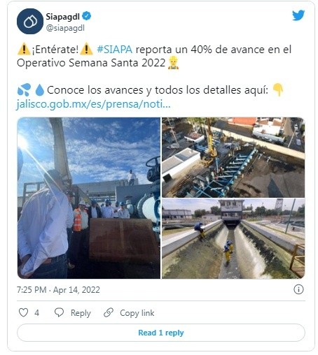 Vecinas y vecinos de las colonias El Rosario y Atlas, en Guadalajara, se dijeron molestos por la falta de información ante los cortes de agua llevados a cabo por el SIAPA ante los trabajos de mantenimiento hidráulico en las instalaciones del Sistema Intermunicipal de Agua Potable y Alcantarillado (SIAPA).“Hoy nos despertamos y vimos que ya no había agua. Ayer en la noche todavía me puse a lavar, de haber sabido que iban a cortarla mejor no lavo y guardo esa agua para bañarnos”, contó Eva Coronado, vecina de la colonia El Rosario.Para hacer frente al corte tuvo que comprar cuatro garrafones de agua para el uso esencial como lavado de manos y para bañarse, y le pidió al repartidor que el día de mañana le deje otros cuatro garrafones. “Ojalá que no tarde mucho en regresar, porque si ni vamos a tener que estar haciendo el gasto para tener agua limpia, luego cuando regresa regresa toda sucia, como terregosa”, lamentó Eva.“Lo malo fue que ahora no avisaron como otros años, que nos preparamos para llenar algunos baldes. Si se nos termina el agua vamos a tener que mandar pedir unos garrafones”, coincidió Alma, vecina de la colonia Atlas.Aunque el SIAPA indicó desde ayer miércoles que dentro del “Operativo Semana Santa 2022” se trabaja en el sistema de abastecimiento Chapala-Guadalajara, así como en la mayoría de sus instalaciones hidráulicas dentro de la ZMG, no especificó las colonias en las cuales se llevarían a cabo los cortes.Esta tarde el SIAPA informó que, en coordinación con la Secretaría de Gestión Integral del Agua (SGIA) recorrió los principales puntos que se intervienen en 34 puntos estratégicos en la infraestructura hidráulica del sistema de abastecimiento, y se corroboró que estas van con un avance de 40 por ciento.“De no presentarse alguna situación emergente se prevé que los trabajos culminen el viernes 15 para dar inicio a la recuperación gradual en el sistema de abastecimiento, informó el director del organismo, Carlos Enrique Torres Lugo.En 13 horas de trabajo, aseguró el SIAPA, se han realizado limpieza de canales, limpieza, desazolve y desinfección de tanques, y ajuste de compuertas.“Durante estos días el servicio de agua potable será intermitente en diversas colonias de los municipios metropolitanos dentro del área de cobertura del Siapa (Guadalajara, Zapopan, San Pedro Tlaquepaque, Tonalá, El Salto y Juanacatlán) y que pertenezcan al sistema de Abasto Chapala-Guadalajara”, aseveró el organismo.Por último, pidió a los ciudadanos a hacer uso racional y responsable del agua con acciones sencillas dentro del hogar como revisar las instalaciones, para evitar fugas o derrames; bañarse de manera breve, recolectar el agua fría que sale de la regadera ya que se puede aprovechar para otros usos; cerrar la llave mientras se lavan las manos o cepillan los dientes; reciclar el agua de la lavadora, la cual se puede utilizar para lavar baños y patios; así como no utilizar la manguera para lavar el auto.“Para mayores informes o solicitud de pipas gratuitas ponemos a disposición de nuestros usuarios, la línea SIAPATEL 33-3668-2482 con 20 líneas abiertas, así como las redes sociales oficiales Facebook: Siapagdl y Twitter: @siapagdl”, finalizó el organismo.JM