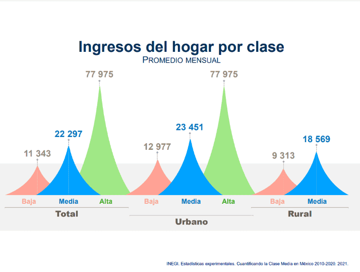 Jalisco, como todo México, es una tierra de contrastes. Su población es una gama de variaciones culturales, religiosas, sociales, y económicas. Somos un estado de diferencias, de mundos encontrados, de realidades distintas que en su conjunto nos conforman y nos dan identidad. El Instituto Nacional de Estadística y Geografía (Inegi), divide a la sociedad mexicana en tres clases sociales: la alta, la media, y la baja. Son categorías para comprender el ingreso mensual de la población, cómo viven, cuáles son sus limitaciones y posibilidades, dónde y cómo habitan, cuál es su nivel de estudios. Cada clase social, a su vez, tiene subcategorías, pues la realidad de cada mexicano es única, pero en general las estadísticas se enfocan en estas tres clases sociales para una comprensión más general. Según el Inegi, la clase social que más predomina en México es la clase baja, con un 56.6% total de la población. La clase baja tiene un ingreso mensual que puede ir desde los mil, hasta los 11 mil 343 pesos, según el estudio "Cuantificando la Clase Media en México 2010-2020". La clase media, que ocupa en porcentaje el 42.2 de la población total, percibe un ingreso mensual que puede llegar hasta los 23 mil pesos. La clase alta registra tan solo el 1.2% de todo México, pero con ingresos superiores a los 70 mil pesos.Es importante aclarar que el ingreso mensual se cuantifica a nivel hogar, no individualmente, según los datos del Inegi. A nivel estatal, en Jalisco la clase social que más predomina es la clase media, registrando el 53.6 por ciento de hogares que pertenecen a esta categoría estadística. Le seguiría la clase baja, con un 45.2%, y la clase alta, que tiene los mismos datos a nivel nacional: tan sólo un 1.2% de los tapatíos tienen ingresos mayores a los 70 mil pesos.El ingreso económico aplicaría igual en Jalisco que en el resto de México:Puedes consultar los datos del Inegi dando click en este enlace.Con información de Inegi FS