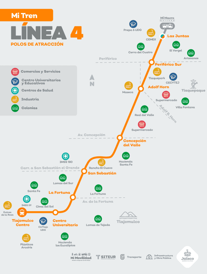 La Línea 4 del Tren Ligero de Guadalajara inició sus obras el pasado mayo del 2022. Entonces se dijo que estaría en funciones en marzo del 2024, pero hasta el momento se registra un avance del 40.5%, y apenas el lunes 19 de febrero del 2024 llegaron al país los primeros vagones que conformarán la L4. Una vez concluida, se espera que la L4 mueva a más de cien mil pasajeros diarios, y que beneficie a las cientos de personas que en lo cotidiano sufren las carencias de un transporte público ineficiente, y las distancias que implica trasladarse desde Tlajomulco hasta la ZMG. La L4 del Tren Ligero tendrá ocho estaciones, y recorrerá 21 kilómetros de distancia. Las estaciones serán las siguientes:La L4 pasará cerca de centros universitarios como CUTlajomulco y la prepa 6, además de los Centros de Salud del IMSS 180 y 59. En su recorrido, abarcará el radio de las siguientes colonias: Los vagones tendrán una capacidad de 300 pasajeros por viaje, y la velocidad de los trenes será de hasta 80 kilómetros por hora.FS