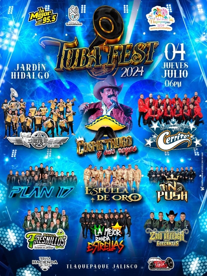 El pasado 21 de junio el Gobierno de Tlaquepaque inauguro la Feria de San Pedro Tlaquepaque, un evento que durará 18 días llenos de música local y de grupos reconocidos, así como shows infantiles y de comedia.El gobierno anunció que han organizado una serie de eventos impresionantes que, además de ser gratuitos, permitirán que las familias de este y otros municipios cercanos salgan a disfrutar de la cultura, música, gastronomía y arte.Entre esos eventos se encuentra el 'Tuba Fest', show música en el que tomarán el escenario varios grupos de banda en el Jardín Hidalgo de San Pedro Tlaquepaque.Tuba Fest se llevará a cabo el próximo jueves 04 de julio a partir de las 18:00 horas y las bandas que se presentarán son las siguientes:Un dato importante es que estos eventos son en colaboración con la estación de radio La Mejor FM 95.5 y que además de un evento de bandas, también estarán presentes varias Sonoras.No olvides que además de música, podrás disfrutar de juegos mecánicos, ventas artesanales y comerciales, una exposición ganadera y muchas sorpresas más. YC