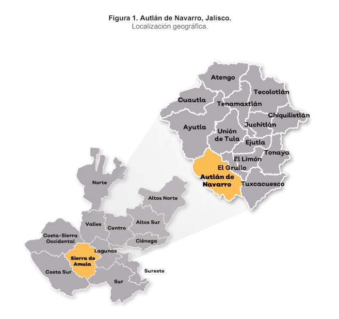 El municipio de Autlán de Navarro es, de acuerdo con el Gobierno de Jalisco, el líder de la región Costa Sur, pues su cabecera municipal es un importante centro de intercambio comercial.El municipio se ubica en la región Sierra de Amula, y colinda con El Grullo, Ayutla, Tuxcacuesco, Cuautitlán de García Barragán, Casimiro Castillo, Villa Purificación y Unión de Tula. Con una extensión de 685.14 kilómetros cuadrados, de acuerdo con el Instituto de Información Estadística y Geográfica de Jalisco (IIEG), es el número 40 en tamaño en el Estado.Según el Diagnóstico del Municipio 2023, el nombre Autlán se deriva de la voz náhuatl "Aotli" (camino, zanja de agua) y "tlan" (lugar de), lo que significa "junto a la zanja de agua".Fue fundado en el siglo VII, por familias que se asentaron cerca de uno de los arroyos del lugar. Con la llegada de los españoles al occidente de México, formó parte de la provincia de Ávalos y luego del Sexto Cantón con capital en Mascota. Se le conoció por muchos años, sobre todo en la época de la colonia, como Autlán de la Grana, derivado a la presencia de la grana cochinilla, el insecto que se cría en las pencas del nopal y con el que los indígenas teñían sus telas. En 1939, por decreto oficial, pasó a ser llamado Autlán de Navarro en honor al general Paulino Navarro, originario del municipio.Autlán se localiza enclavado en la Sierra Volcánica Transversal, por lo que predomina el suelo montañoso, con elevaciones de hasta 2 mil 700 metros.Habitado por 64 mil 931 personas, según el censo de Población y Vivienda del Inegi del año 2020, tiene clima semiseco y semicálido en primavera.El río Armería, y los arroyos El Jalocote, El Coajinque, Manantlán, Ahuacapán, El Cangrejo, la Yerbabuena y otros, siguen su caudal por el territorio durante la época de lluvias.Las principales actividades económicas de Autlán son la agricultura, el comercio, el transporte, la pesca, además del turismo, la administración pública y otros.El municipio cuenta con centros deportivos, parques recreativos, balnearios. La carretera federal 80 lleva a Guadalajara y a la costa de Jalisco, en Barra de Navidad.Autlán comparte la Reserva de la Biosfera de Manantlán con Tuxcacuesco, Tolimán, Cuautitlán de García Barragán, El Grullo, Zapotitlán de Vadillo, Casimiro Castillo en Jalisco; además de Minatitlán, Comala y Villa de Álvarez, de Colima. De acuerdo con Google Maps, entre Guadalajara y Autlán hay una distancia de 192 kilómetros, y viajando por la carretera federal 80 se llega en aproximadamente 3 horas y 20 minutos. *Con información del Instituto de Información, Estadística y Geográfica de Jalisco, Gobierno de Jalisco y el Inegi*Mantente al día con las noticias, únete a nuestro canal de WhatsApp OF