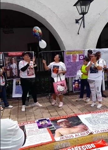 Este domingo familias en busca de sus desaparecidos, compuestas por niños pequeños y hasta personas adultas mayores, se manifestaron nuevamente para exigir a las autoridades estatales que que realicen acciones reales para dar con el paradero de sus seres queridos y que dejen de lado "las simulaciones". Partieron desde el cruce de las avenidas López Mateos e Hidalgo, y caminaron hasta llegar a Casa Jalisco, en medio de las consignas como "Vivos se los llevaron, vivos los queremos", "De norte a sur, de este a oeste, seguiremos en la lucha cueste lo que cueste", "Estamos viviendo una pesadilla", y "Señor gobernador no sea indiferente, se llevan nuestros hijos delante de la gente".Héctor Flores, secretario del colectivo Luz de Esperanza, explicó que esta protesta fue llevada a cabo con la finalidad de que se invite a todos los colectivos de familias que buscan a sus seres queridos, a las mesas de trabajo que se les han prometido, además de exigir a las autoridades que cumplan a cabalidad con los principios de inmediatez y búsqueda exhaustiva."Queremos inhibir el delito. Sabemos que hay alrededor de 45 desaparecidos diarios. Hay una entrevista de una trabajadora de la Fiscalía donde dice que reciben nueve grupos al día y alrededor de cinco denuncias diarias cada grupo, son 45 denuncias diarias", dijo Héctor Flores.El día de hoy solo salió una persona de la Dirección de Asuntos Políticos a recibirles sus peticiones, pero no se les dio ninguna respuesta a lo solicitado."Cada marcha, cada mesa de trabajo es lo mismo: volver a empezar, esperamos que ahora que nos estamos uniendo más colectivos sigamos con esta sinergia y que también sean llamados a las mesas de trabajo. En las dependencias son simulaciones, lo que sí podemos decir sin miedo es que la Comisión de Búsqueda nos tiene frenadas las búsquedas de nuestro colectivo, tanto en Fiscalía como en la Comisión están vetadas", dijo Héctor Flores."Creemos que es por la exigencia, a que seguimos pisándoles los cayos. Ellos creen que lo que hacemos es molesto, entonces a eso ellos dicen 'tú me estás molestando, yo no te doy la entrada'. Nosotros no podemos entrar a Palacio de Gobierno, tiene que preguntar el policía, nos dejan esperando hasta 20 minutos y nos dicen que no nos pueden atender", dijo por su parte la presidenta de Luz de Esperanza, Liliana Meza.Para Héctor Flores, todas estas omisiones violan no solo los derechos individuales de sus hijos e hijas desaparecidos a ser buscados, a la verdad, a la debida diligencia. "Estamos pidiendo lo mismo: que los busquen, que investiguen, que Fiscalía no se esté haciendo pato, que no tengan supuestas mesas de trabajo y el mero día nos las cancelen", añadió Liliana.De acuerdo con el Registro Nacional de Personas Desaparecidas o No Localizadas, al día de hoy hay en Jalisco 15 mil 027 personas de quienes se desconoce su paradero, contando únicamente a aquellas víctimas por quienes se denunció su desaparición.Al llegar a Casa Jalisco, las y los asistentes hicieron un pequeño homenaje para conmemorar el cumpleaños de Yesui Rogelio Hernández Zamora, quien fue visto por última vez en noviembre de 2021 en la colonia Paseo de los Agaves, en Tlajomulco de Zúñiga.El cuerpo de Yesui Rogelio fue encontrado el pasado 3 de marzo en la fosa clandestina hallada a metros de la Laguna de Cajititlán, sin embargo, Monserrat Zamora, su madre, continúa apoyando a las familias que todavía buscan a sus seres queridos para exigir búsqueda y justicia por cada uno de sus desaparecidos.Este sábado 25 de junio Yesui cumpliría 25 años, y por ello, frente a Casa Jalisco, a donde llegó la manifestación este domingo, su madre envió al cielo un par de globos en medio de aplausos. "Hasta el cielo Yesui", se escuchó de fondo."Hasta donde estés, que tu luz brille por siempre. Ya donde estás nadie puede hacerte daño, nadie puede juzgarte ni hacerte nada. Descansa" dijo una de las jóvenes mientras el resto de madres, hermanas, e hijas la llenaban de abrazos. JL
