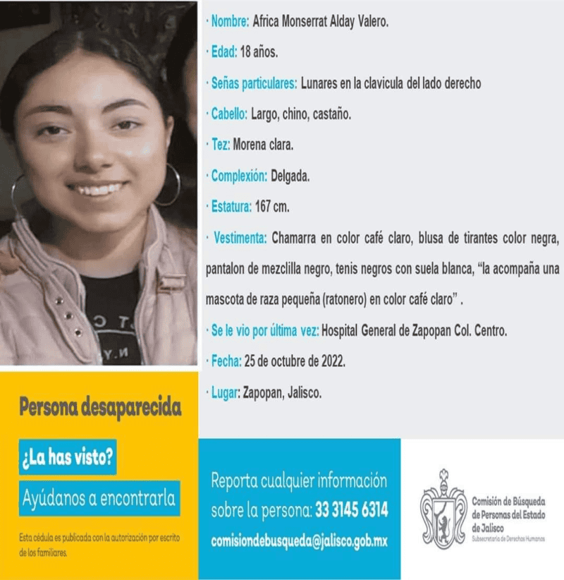 África fue vista por última vez el 25 de octubre por la zona del Hospital General de Zapopan.