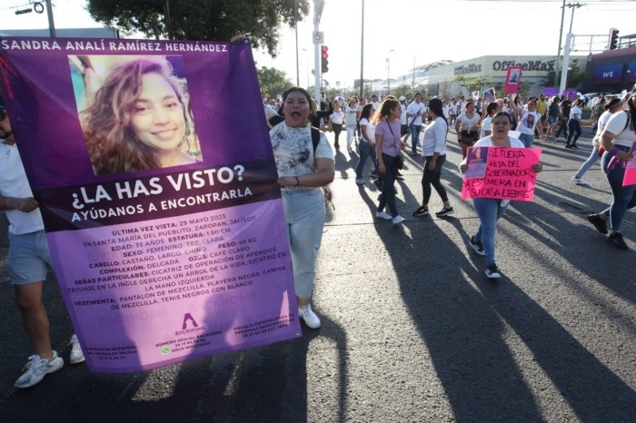 Entre gritos de desaparición y coraje, más de un centenar de personas se manifestaron en la avenida Ignacio L. Vallarta en exigencia de la aparición con vida de Sandra Analí Ramírez Hernández, quien fue vista por última vez el día 29 de mayo en la misma vialidad frente a un supermercado, en la Colonia Santa María del Pueblito en el municipio de Zapopan, cuando se dirigía a su trabajo.El punto de reunión fue el cruce de la calle Allende con la avenida Vallarta, sitio de donde partió la protesta hasta la avenida Rafael Sanzio para ocupar los carriles centrales de ambas vialidades, colapsando el tránsito vehicular en la zona.Agustín Ramírez, padre de Sandra Analí, aseguró que la Fiscalía General del Estado (FGE) de Jalisco intentó engañarlos el día de ayer, tras la primera manifestación por la desaparición de la joven, al pedirles que sofocaran la protesta porque tenían información del caso que compartirles.“A mí me dicen ayer que me vaya con ellos, que me van a enseñar unos videos y cuando llego no hay nada, no me enseñan nada, nos llevaron con engaños después de que nos agredieron”. En la manifestación del día lunes, personal de la Secretaría de Seguridad agredió a los quejosos que, también se plantaron entre avenida Vallarta y calle Allende.Entre empujones y jalones, uniformados reprimieron la protesta al exigir a los manifestantes liberar las vialidades. Agustín Ramírez fue retenido momentáneamente por la autoridad, para ser liberado minutos después.En la marcha del día de hoy, más de 150 uniformados vigilaron la protesta, e incluso amagaron a los manifestantes con tomar acciones en su contra debido a la ocupación de los carriles centrales de la avenida Vallarta.Sin embargo, al peso de unos minutos la manifestación avanzó de regreso al punto de salir por los carriles laterales de Vallarta. Desde el 20 de mayo han desaparecido al menos 8 jóvenes: siete empleados de un call center, cuya investigación la Fiscalía relaciona con el delito de fraude, y Analy.